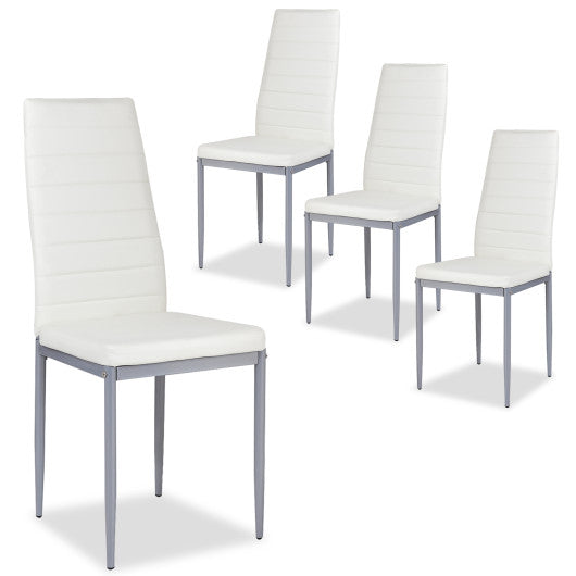 4 pcs PVC Leather Dining Side Chairs Elegant Design -White