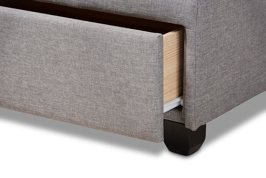 Baxton Studio Larese Light Grey Fabric Upholstered 2-Drawer King Size Platform Storage Bed