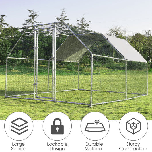The cages are the perfect way to offer protection to your pets whilst also give them a large space for activities. The quick-connect frame allows for easy assembly. It's perfect for your backyard or your farm giving your chicken a secure outdoor space to stay. The PVC coated hexagonal wire mesh provides for extra safety by preventing unexpected accidents. Waterproof and anti-ultraviolet cover can prevent bad weather effects. And galvanized coop resists rust corrosion and fading which adds durability and prolongs the service time. If you are looking for a coop like that don't hesitate to buy it. Solid steel frame is not easy to damage keeping long-term use time Super large space gives plenty of room for foraging perfect for outdoor use Galvanized tube resists rust corrosion and fading adding durability PVC coated hexagonal wire mesh adds safety to your chicken Waterproof and uv protected oxford cloth cover protects your chicken from the weather Smooth surface is easy to clean with a wet cloth or some running water A lockable steel door is easy for you to feed your chicken and clean the inside The door designed with a latch for extra safety A number of essential pedestals that make the cage more steady Quick-connect frame allows for easy assembly