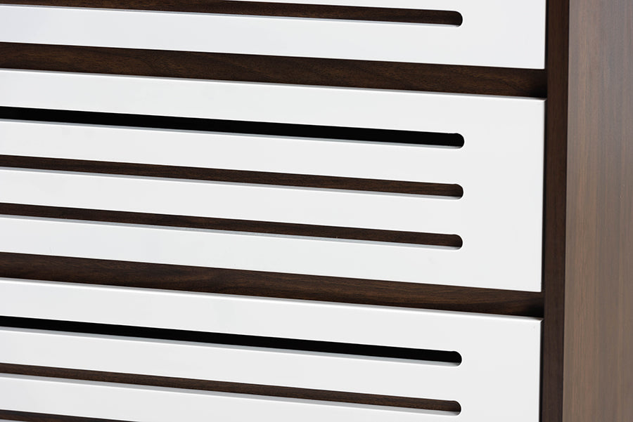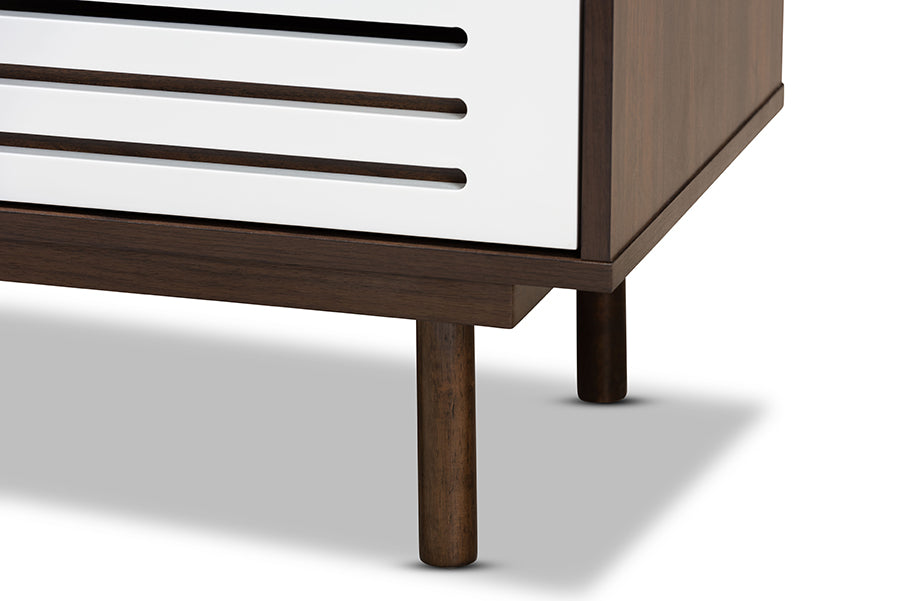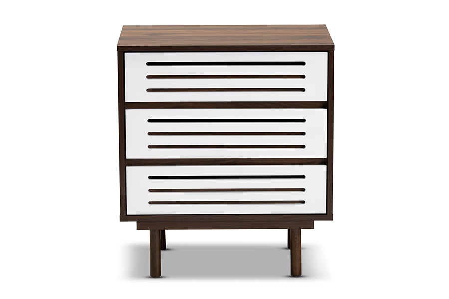 Baxton Studio Meike Mid-Century Modern Two-Tone Walnut Brown and White Finished Wood 3-Drawer Nightstand