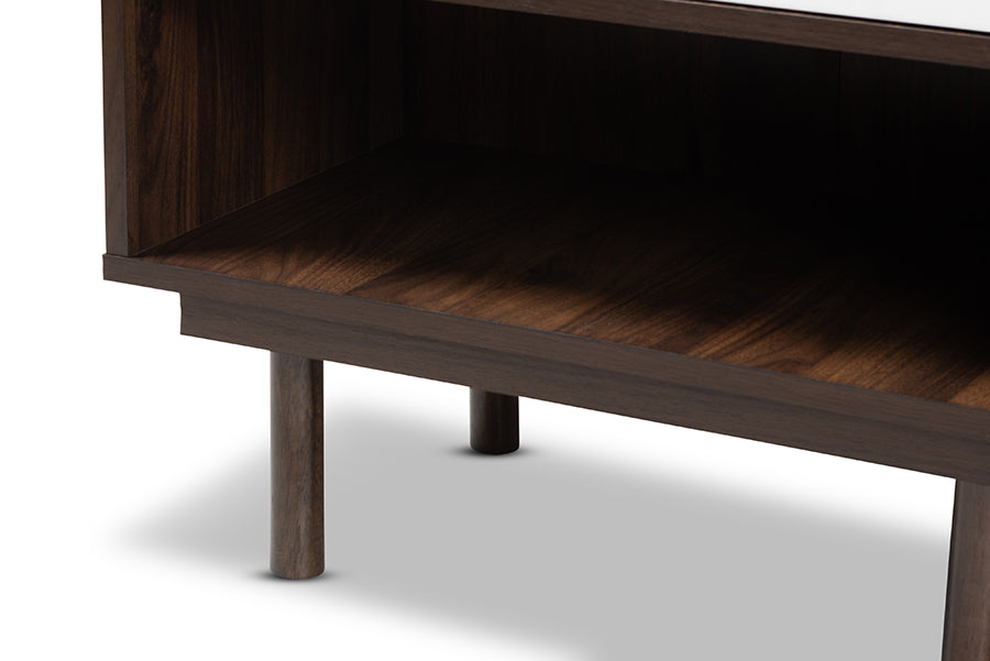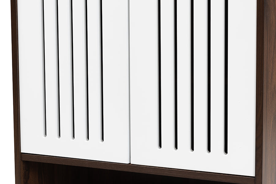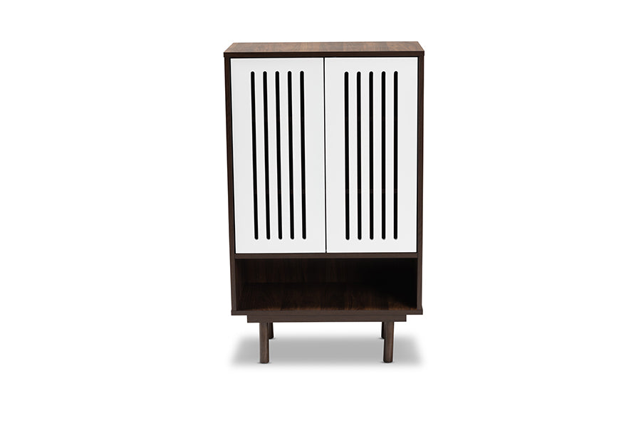 Baxton Studio Meike Mid-Century Modern Two-Tone Walnut Brown and White Finished Wood 2-Door Shoe Cabinet