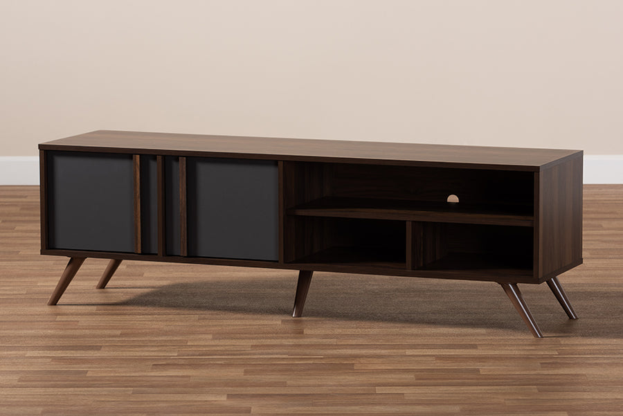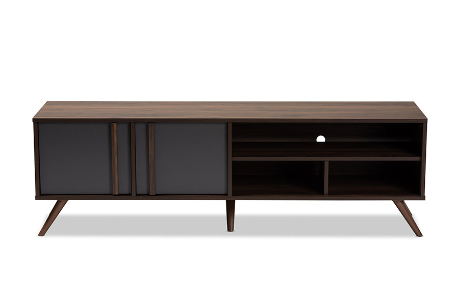 Baxton Studio Naoki Modern and Contemporary Two-Tone Grey and Walnut Finished Wood 2-Door TV Stand