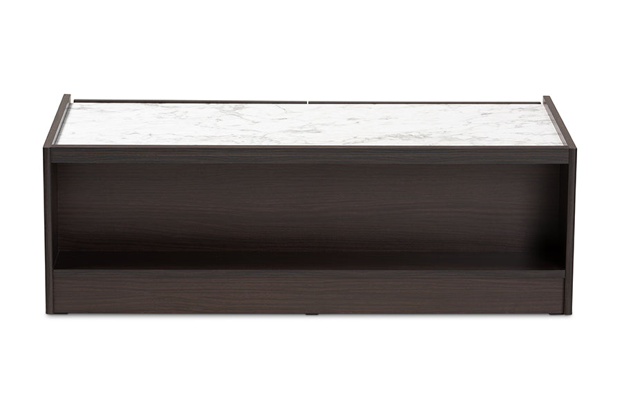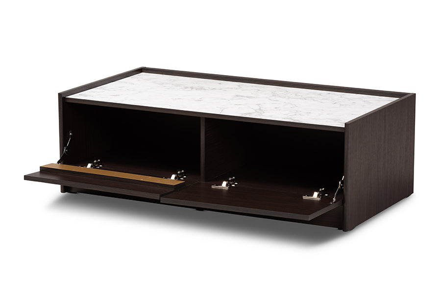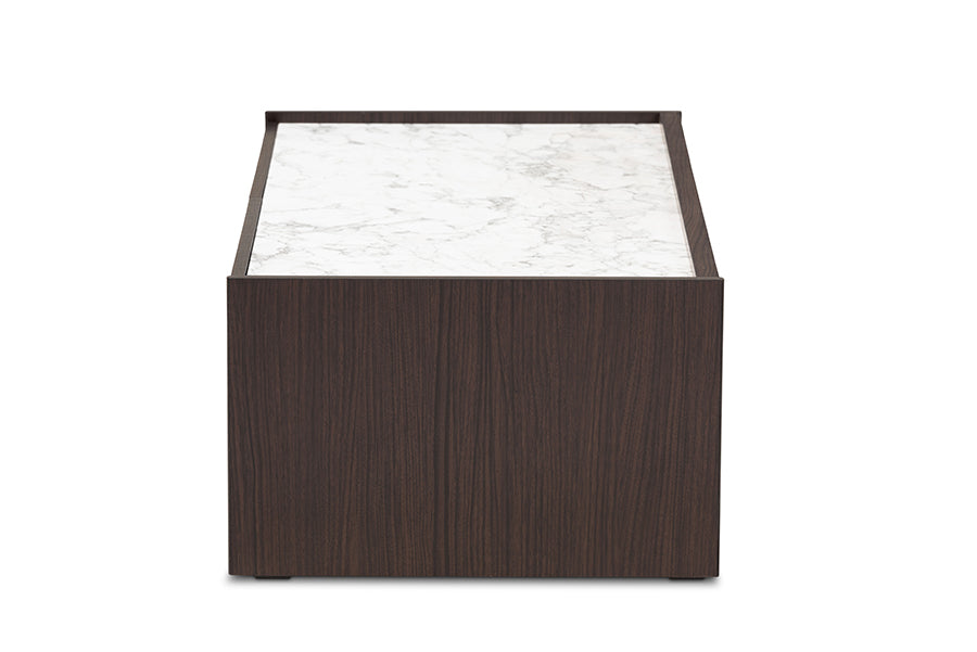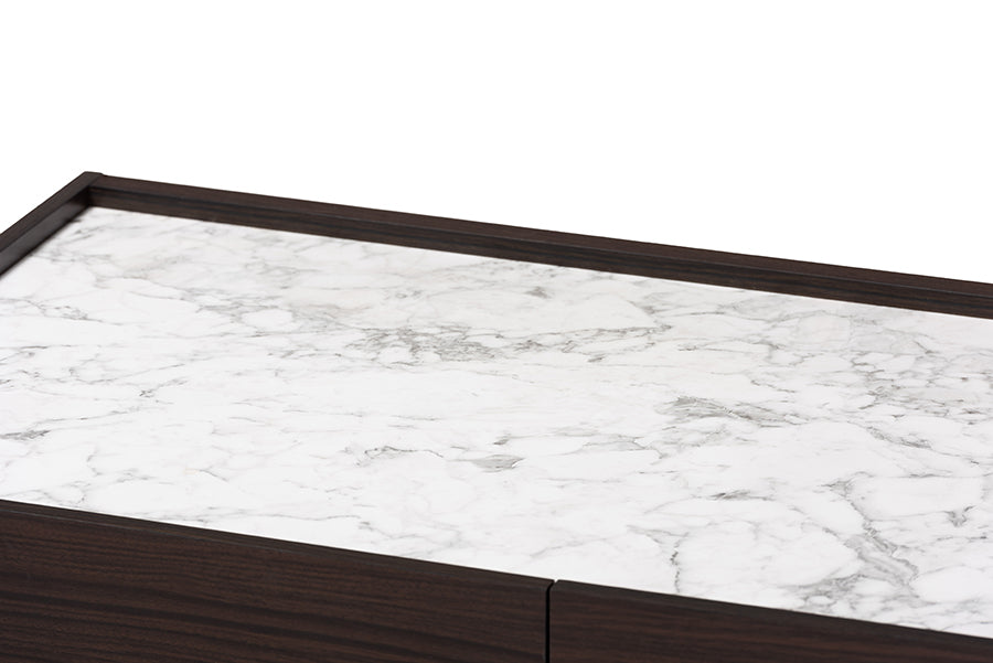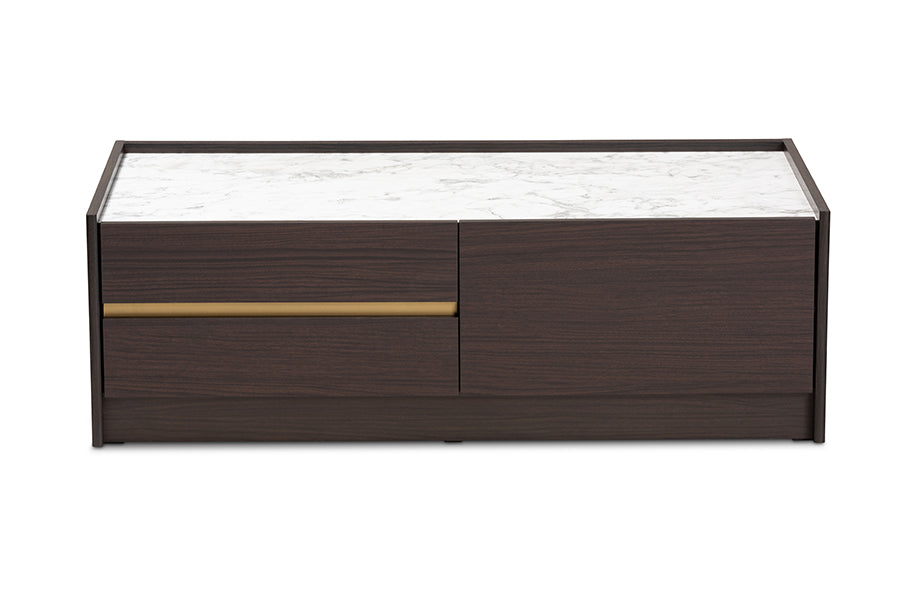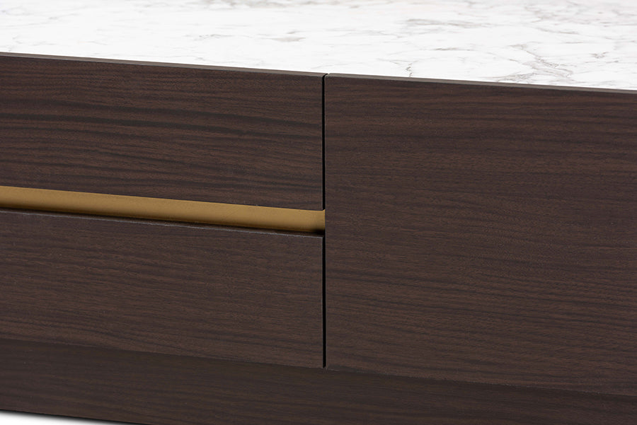 Baxton Studio Walker Modern and Contemporary Dark Brown and Gold Finished Wood Coffee Table with Faux Marble Top