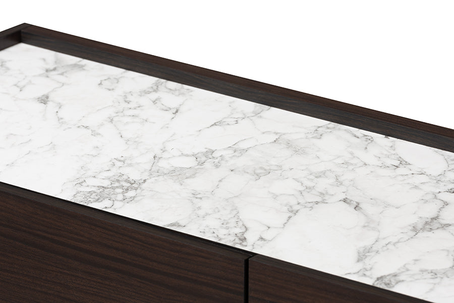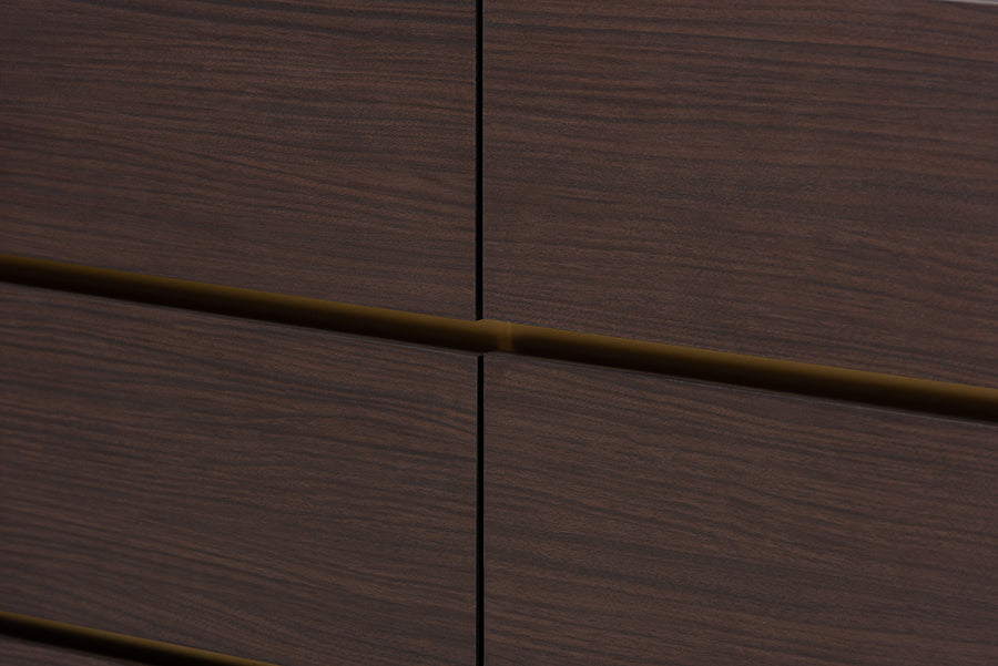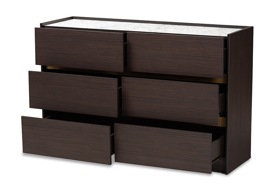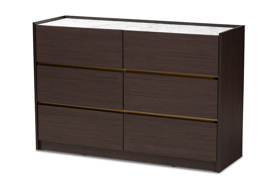Baxton Studio Walker Modern and Contemporary Dark Brown and Gold Finished Wood 6-Drawer Dresser with Faux Marble Top