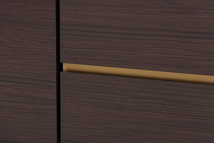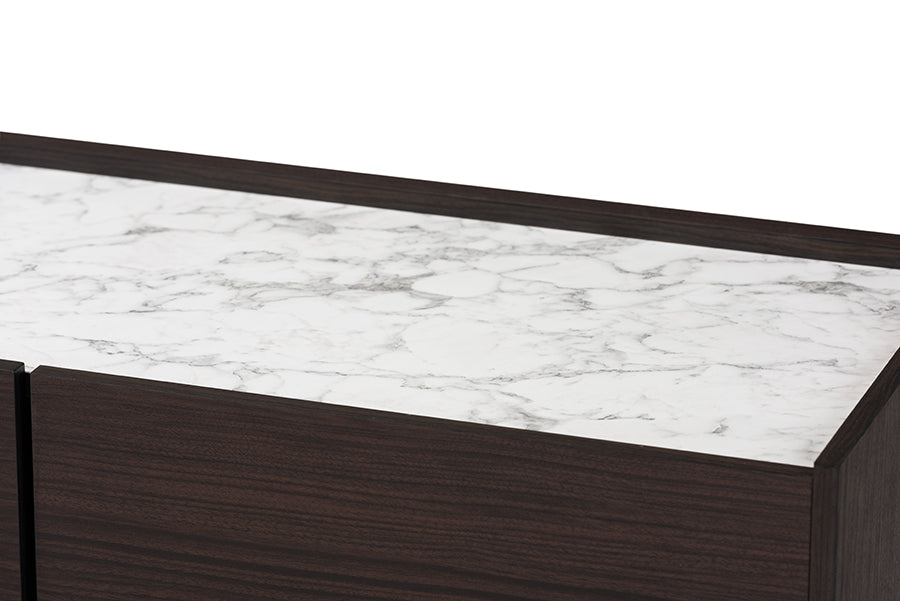 Baxton Studio Walker Modern and Contemporary Dark Brown and Gold Finished Wood TV Stand with Faux Marble Top
