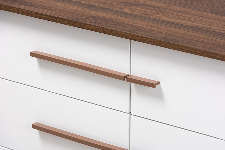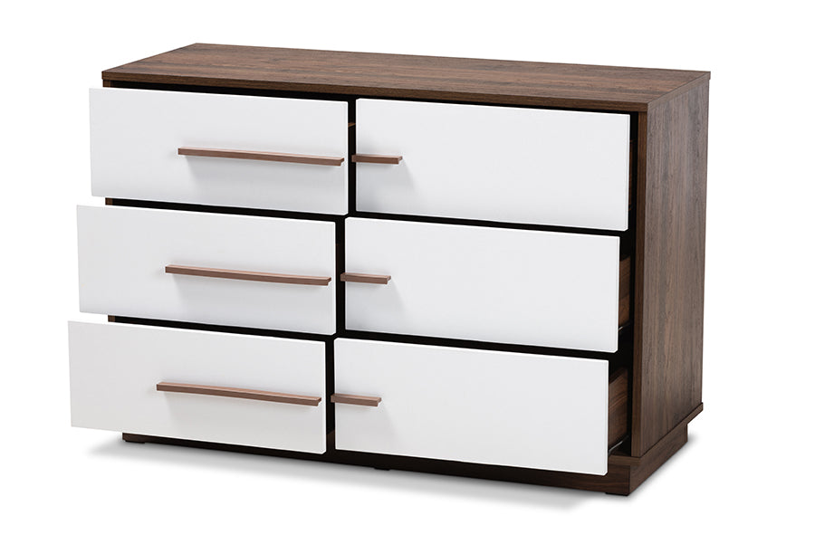 Baxton Studio Mette Mid-Century Modern Two-Tone White and Walnut Finished 6-Drawer Wood Dresser