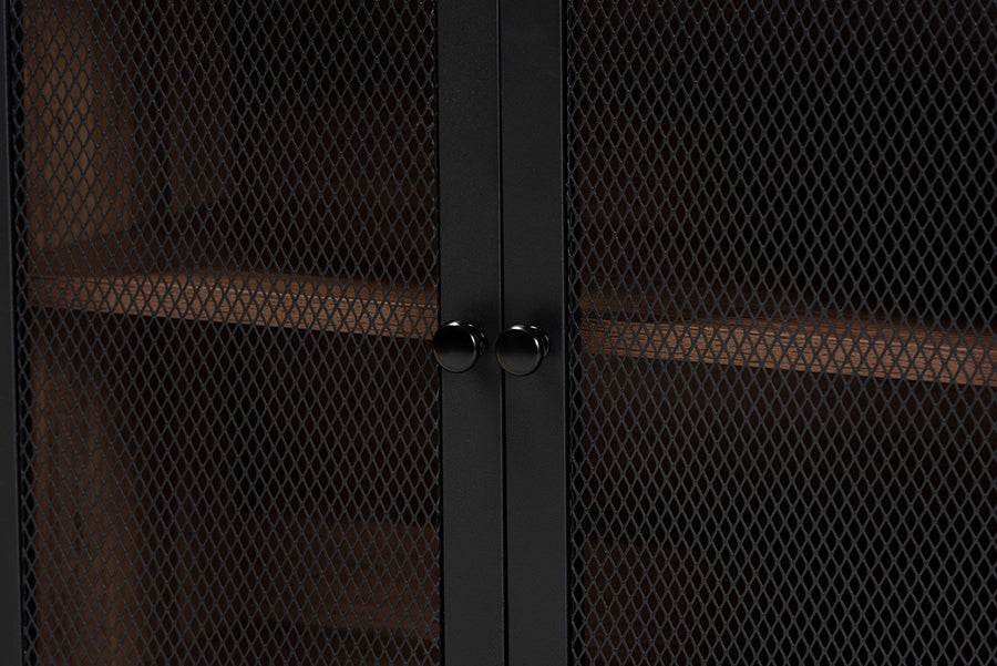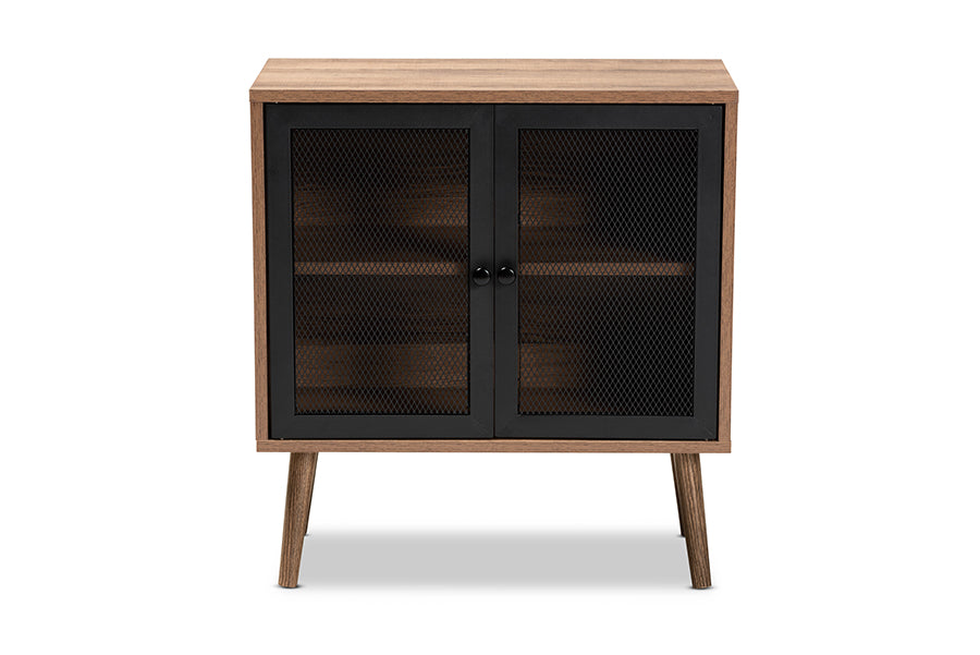 Baxton Studio Yuna Mid-Century Modern Transitional Natural Brown Finished Wood and Black Metal 2-Door Storage Cabinet