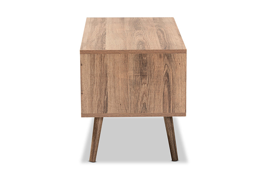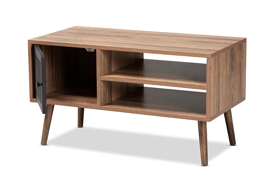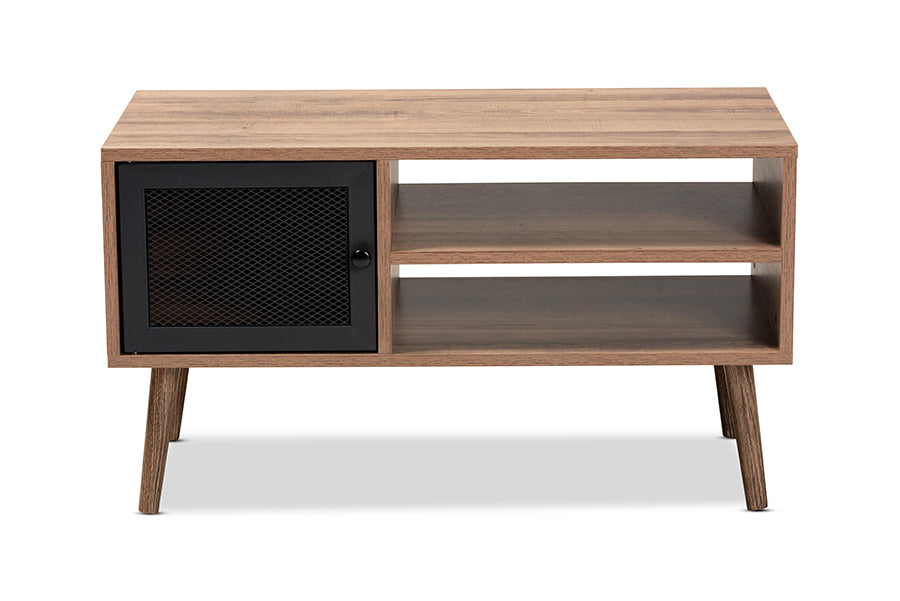 Baxton Studio Yuna Mid-Century Modern Transitional Natural Brown Finished Wood and Black Metal 1-Door Coffee Table
