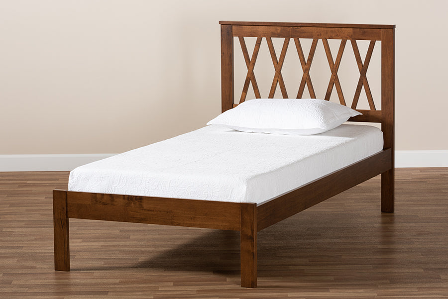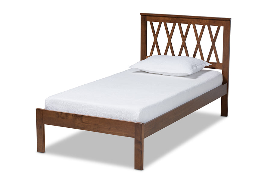 Baxton Studio Malene Mid-Century Modern Walnut Finished Wood Twin Size Platform Bed