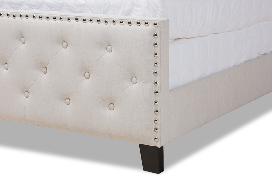 Baxton Studio Marion Modern Transitional Beige Fabric Upholstered Button Tufted Full Size Panel Bed