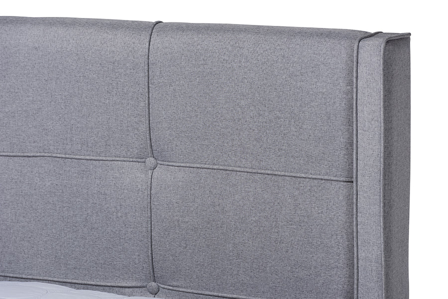Baxton Studio Edmond Modern and Contemporary Grey Fabric Upholstered and Ash Walnut Brown Finished Wood King Size Platform Bed