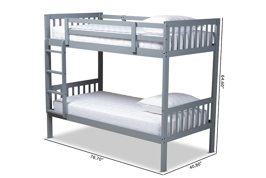Baxton Studio Jude Modern and Contemporary Grey Finished Wood Twin Size Bunk Bed