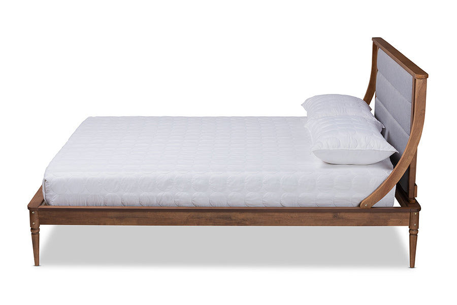 Baxton Studio Regis Modern and Contemporary Transitional Light Grey Fabric Upholstered and Walnut Brown Finished Wood Full Size Platform Bed
