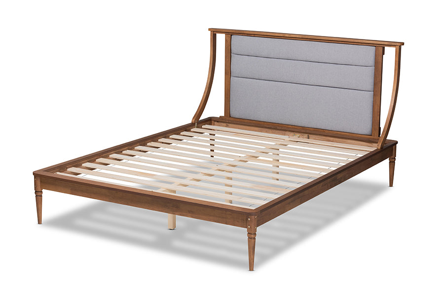 Baxton Studio Regis Modern and Contemporary Transitional Light Grey Fabric Upholstered and Walnut Brown Finished Wood Queen Size Platform Bed