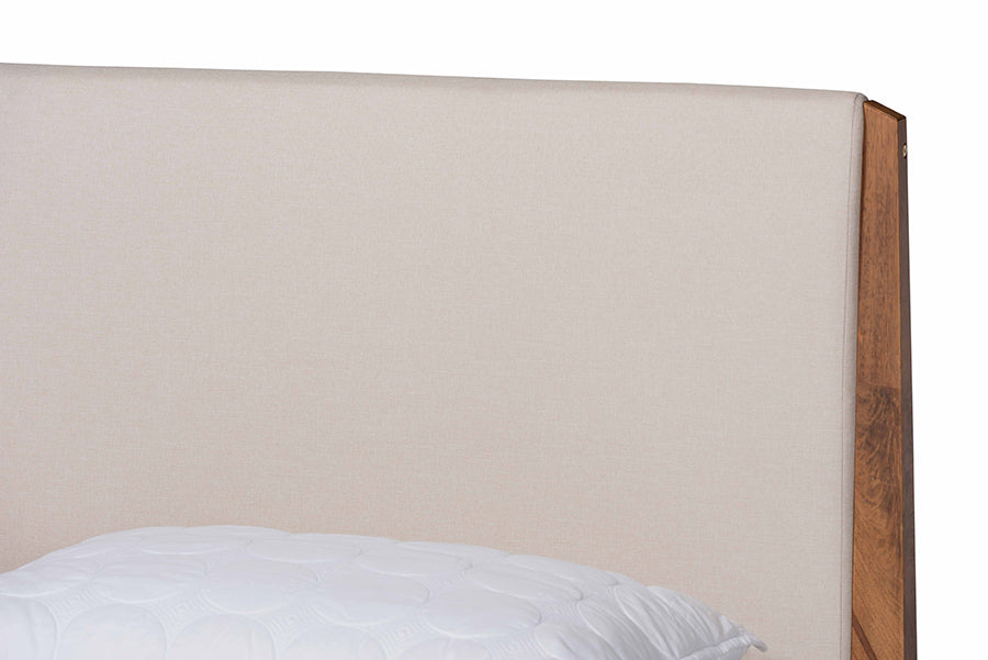 Baxton Studio Lenora Mid-Century Modern Beige Fabric Upholstered and Walnut Brown Finished Wood Full Size Platform Bed