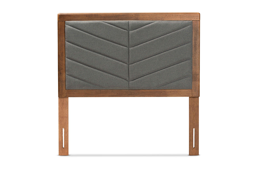 Baxton Studio Iden Modern and Contemporary Dark Grey Fabric Upholstered and Walnut Brown Finished Wood Twin Size Headboard