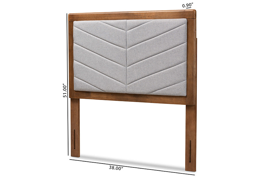 Baxton Studio Iden Modern and Contemporary Light Grey Fabric Upholstered and Walnut Brown Finished Wood Twin Size Headboard
