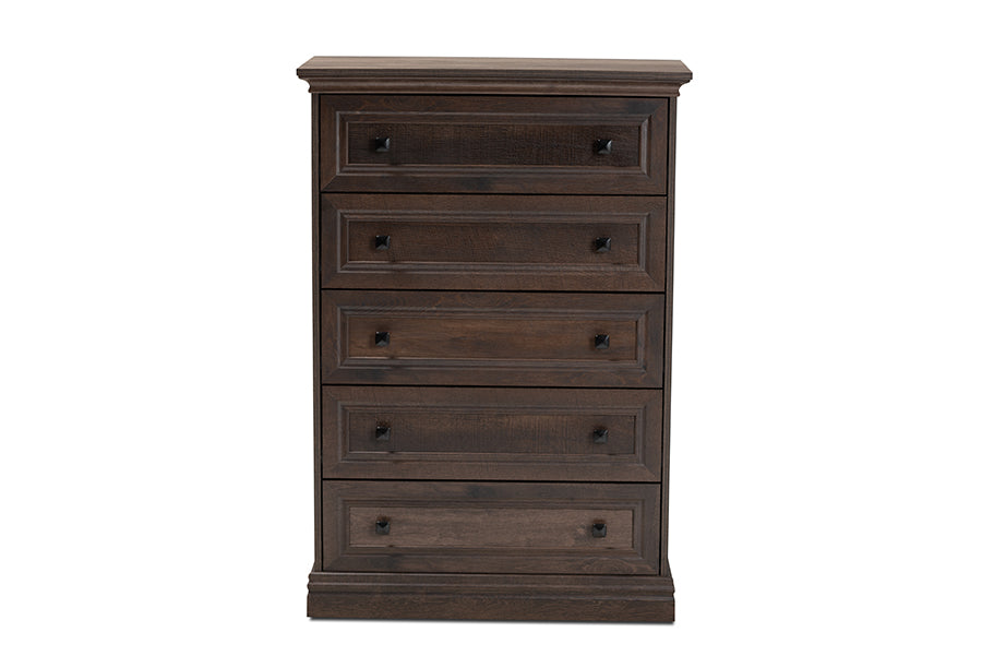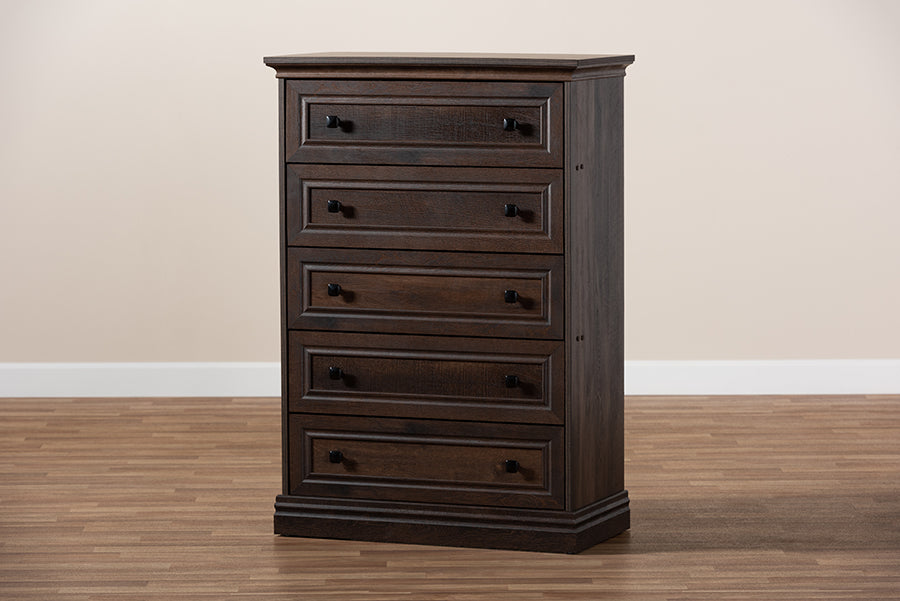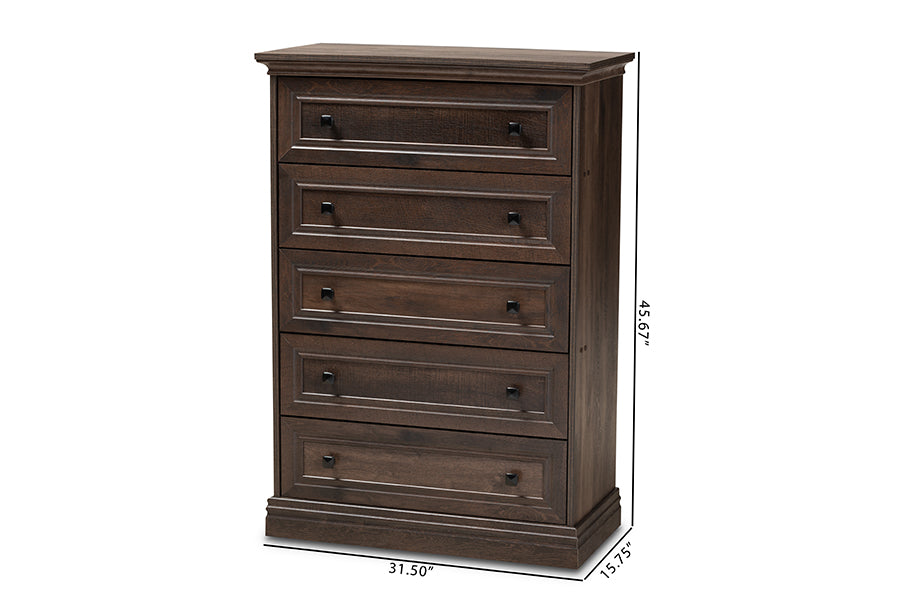 Baxton Studio Nolan Traditional Transitional Hazel Walnut Brown Finished 5-Drawer Wood Chest