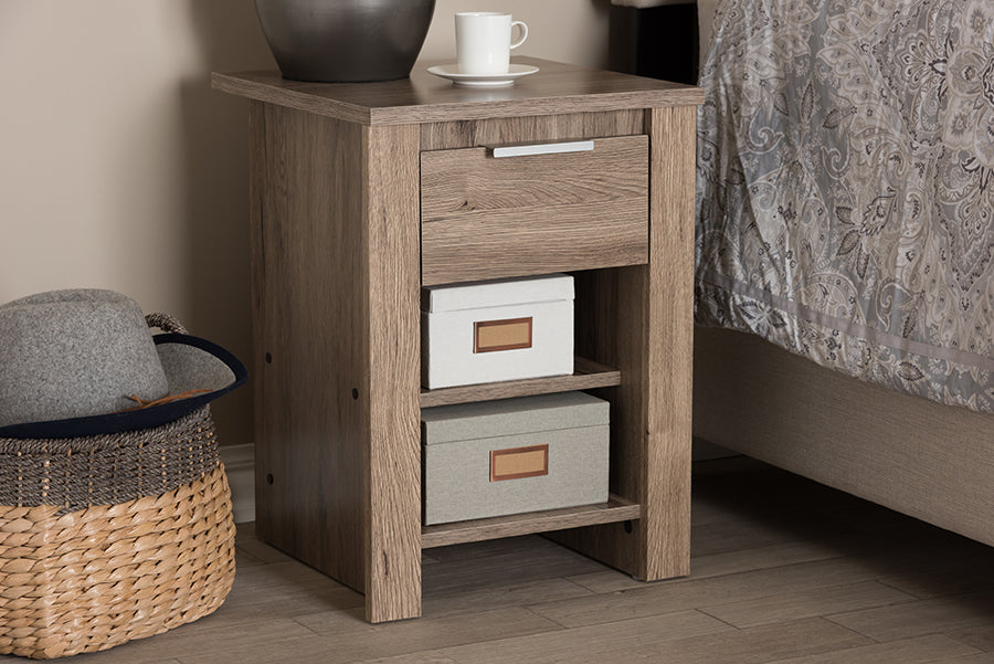 Baxton Studio Laverne Modern and Contemporary Oak Brown Finished 1-Drawer Nightstand