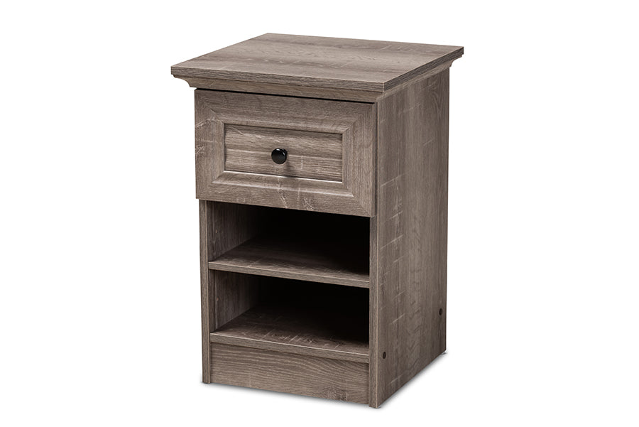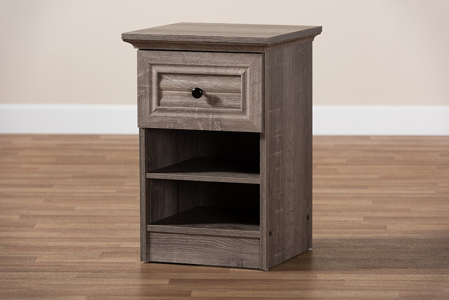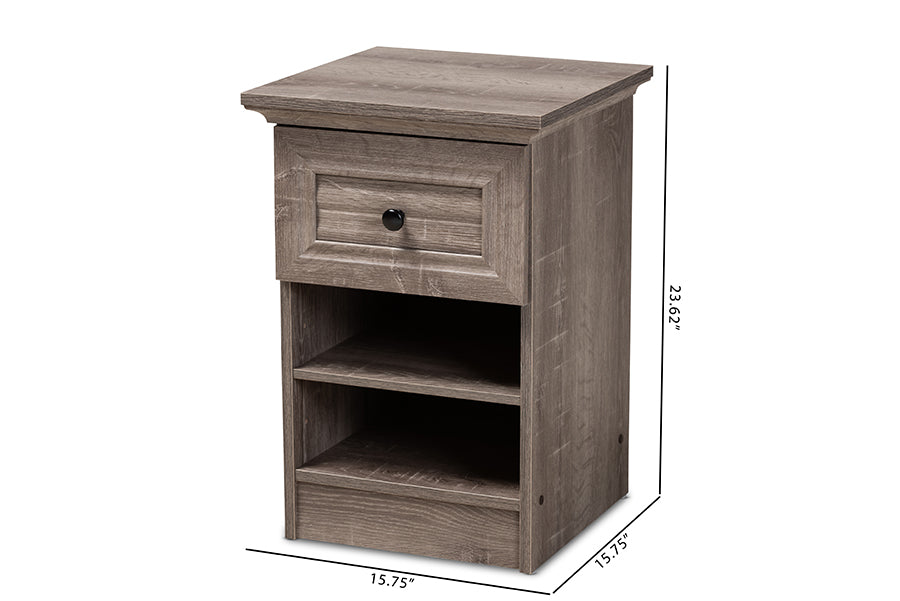 Baxton Studio Dara Traditional Transitional Grey Brown Oak Finished 1-Drawer Wood Nightstand