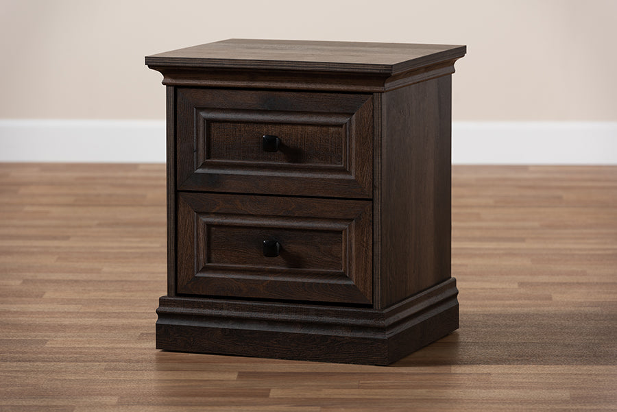 Baxton Studio Nolan Traditional Transitional Hazel Walnut Brown Finished 2-Drawer Wood Nightstand