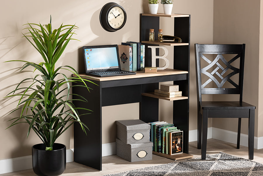 Baxton Studio Callahan Modern and Contemporary Two-Tone Dark Grey and Oak Finished Wood Desk with Shelves