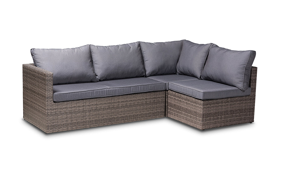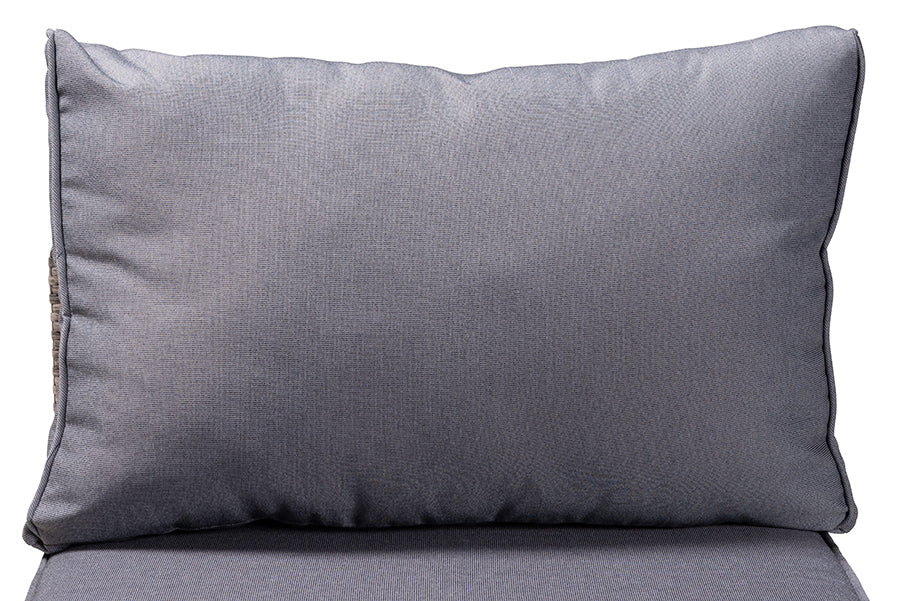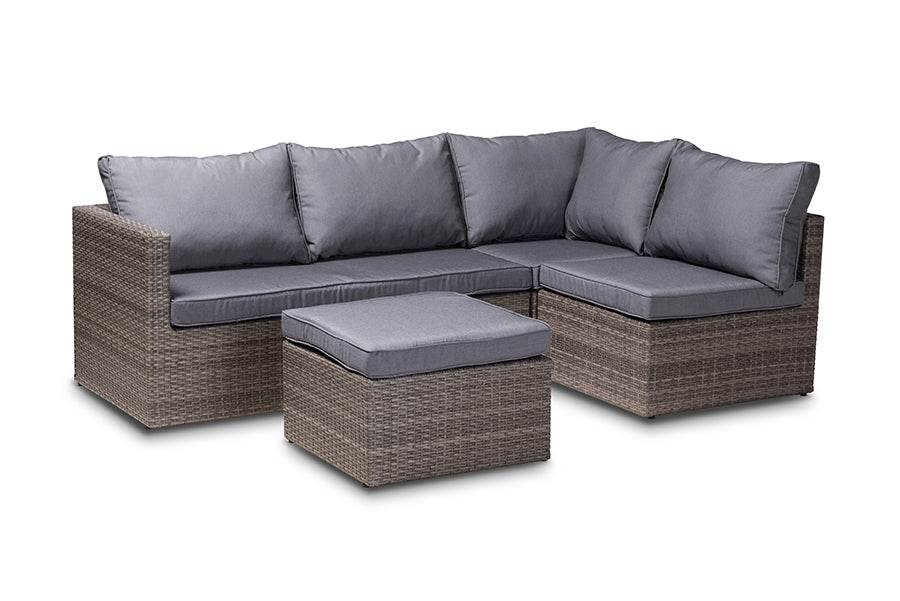 Baxton Studio Pamela Modern and Contemporary Grey Polyester Upholstered and Brown Finished 4-Piece Woven Rattan Outdoor Patio Set