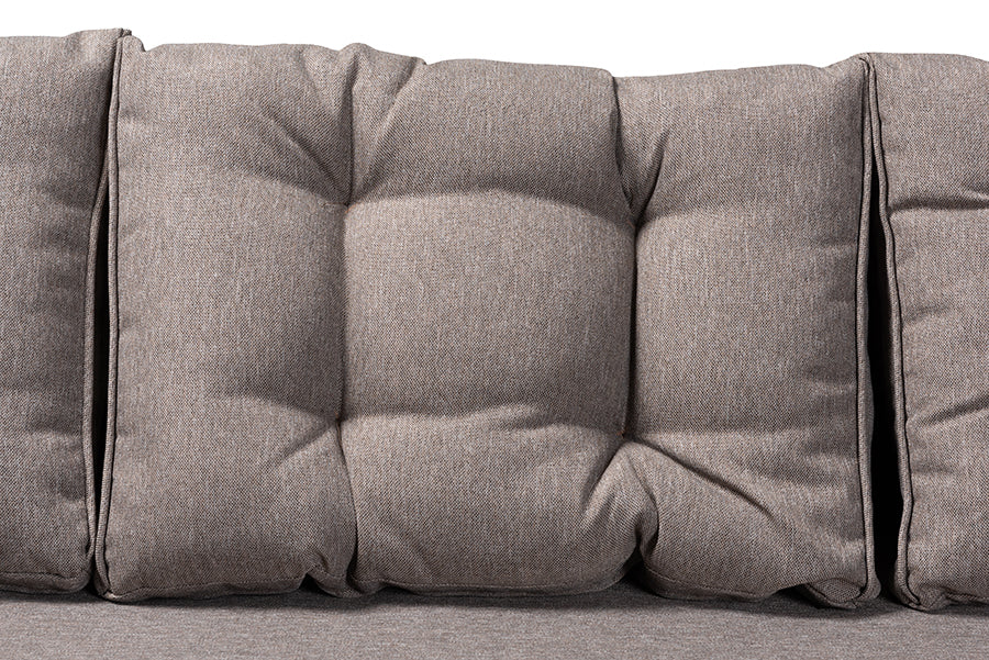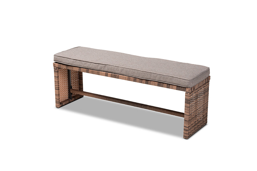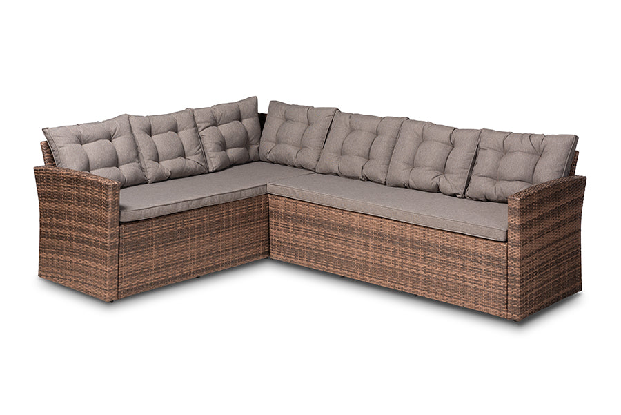 Baxton Studio Angela Modern and Contemporary Grey Fabric Upholstered and Brown Finished 4-Piece Woven Rattan Outdoor Patio Set