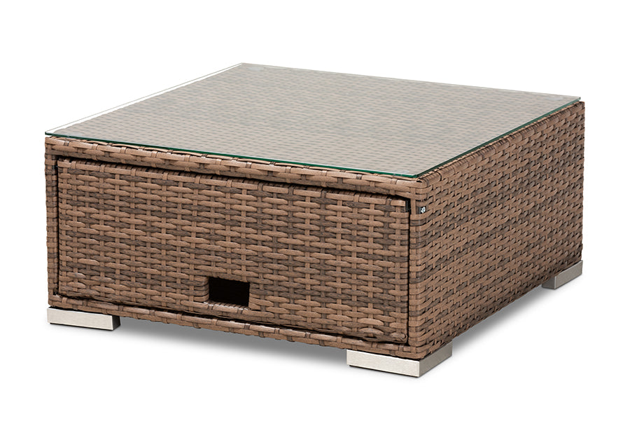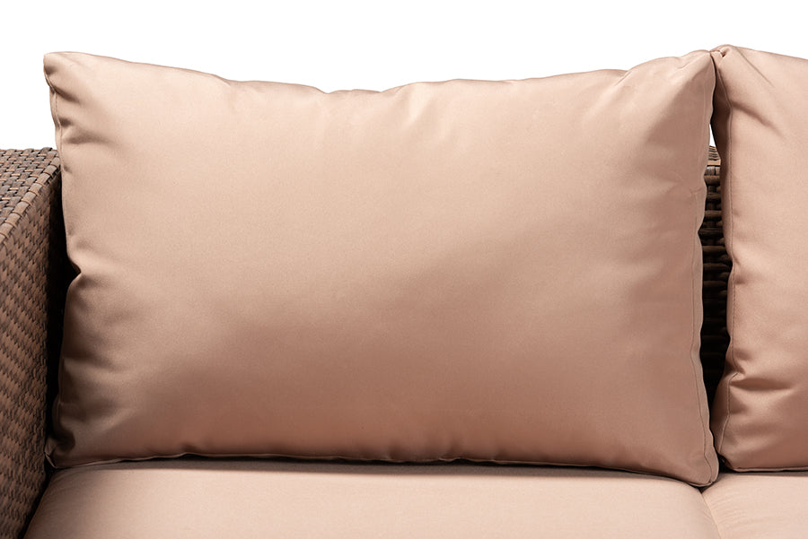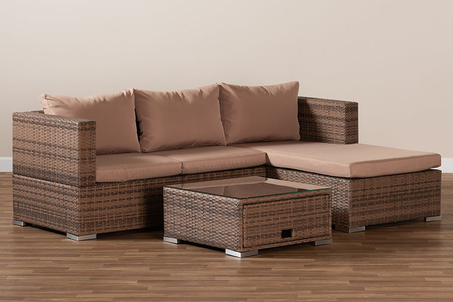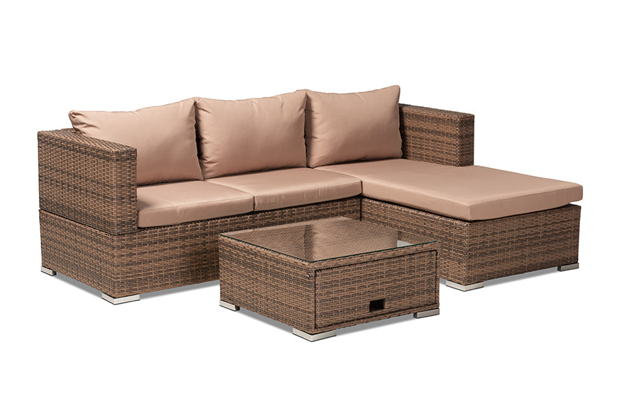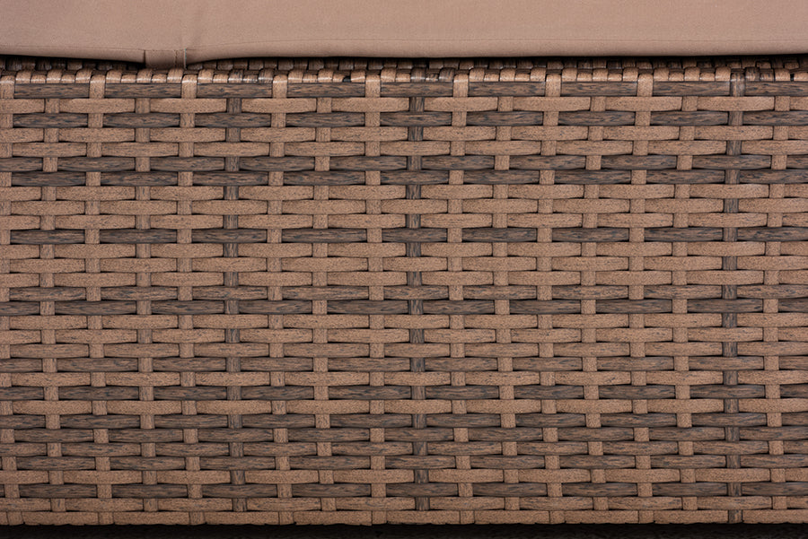 Baxton Studio Addison Modern and Contemporary Light Brown Upholstered and Brown Finished 3-Piece Woven Rattan Outdoor Patio Set with Adjustable Recliner