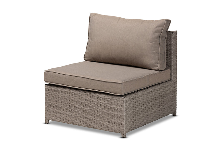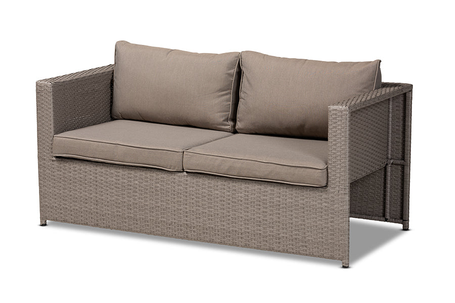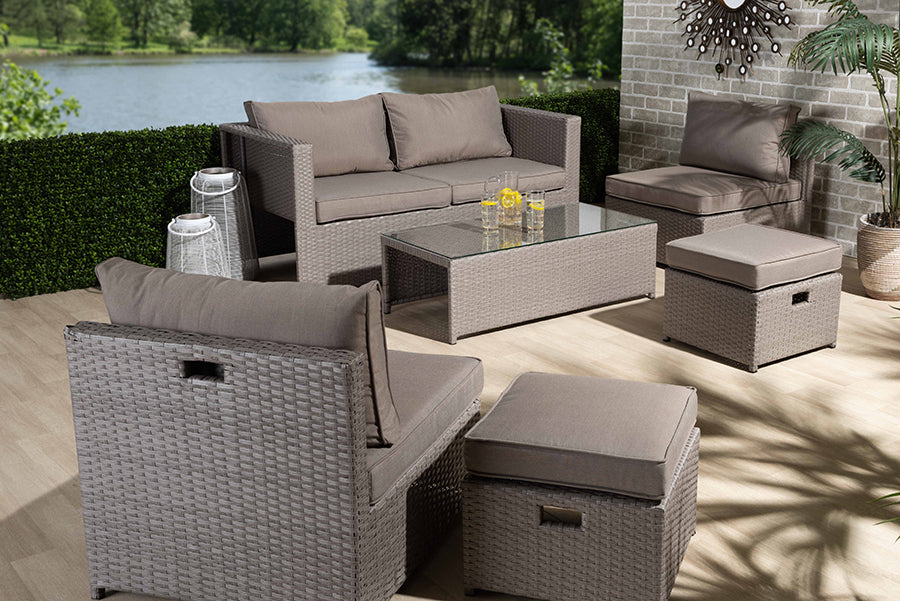 Baxton Studio Haina Modern and Contemporary Grey Fabric Upholstered and Grey Finished Synthetic Rattan 6-Piece Patio Set
