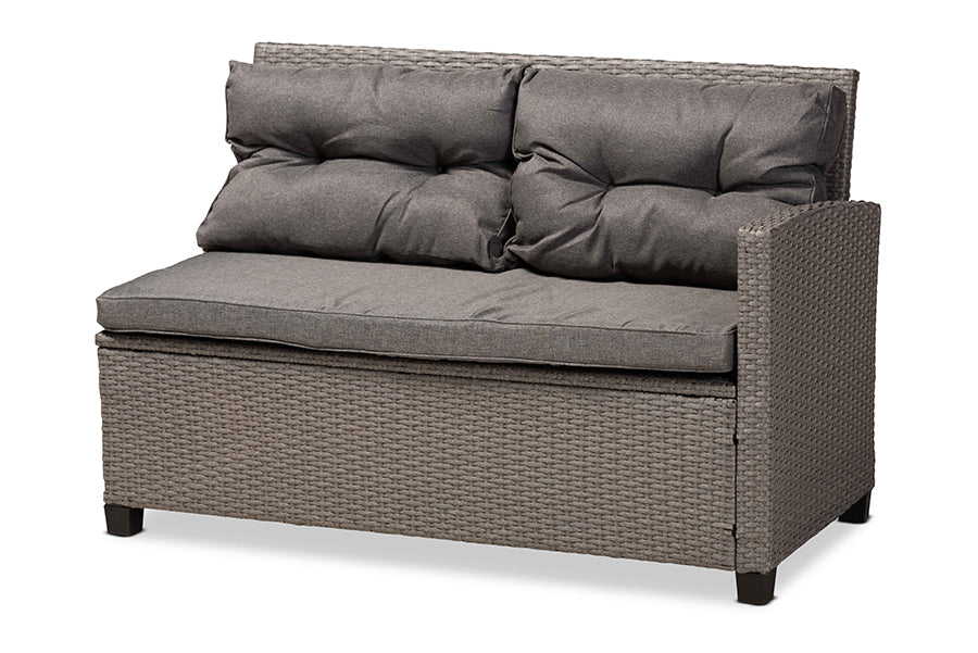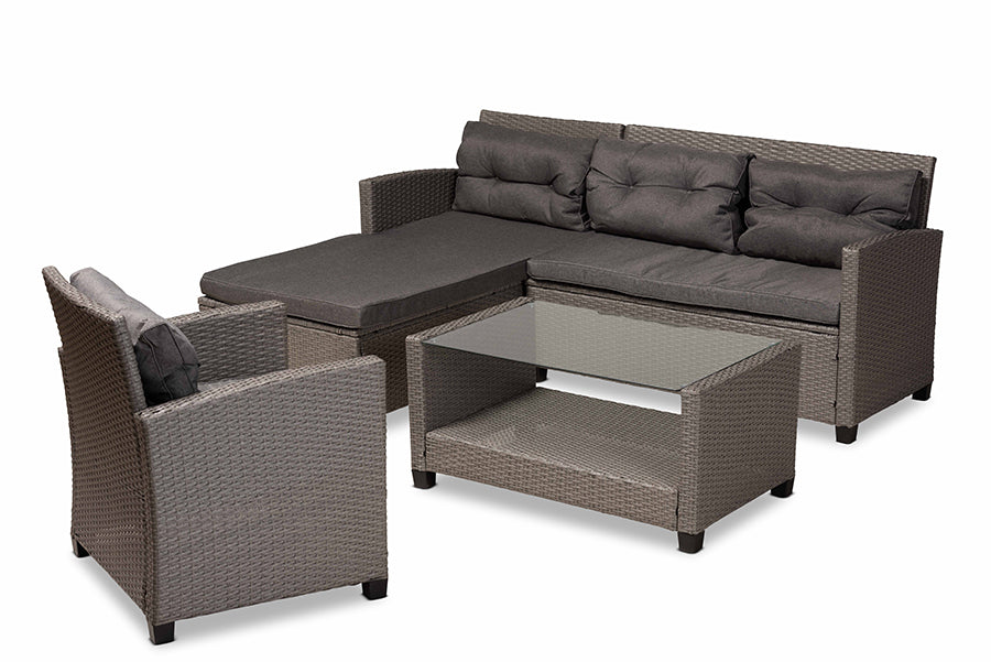 Baxton Studio Darian Modern and Contemporary Grey Fabric Upholstered and Grey Synthetic Rattan 4-Piece Patio Set