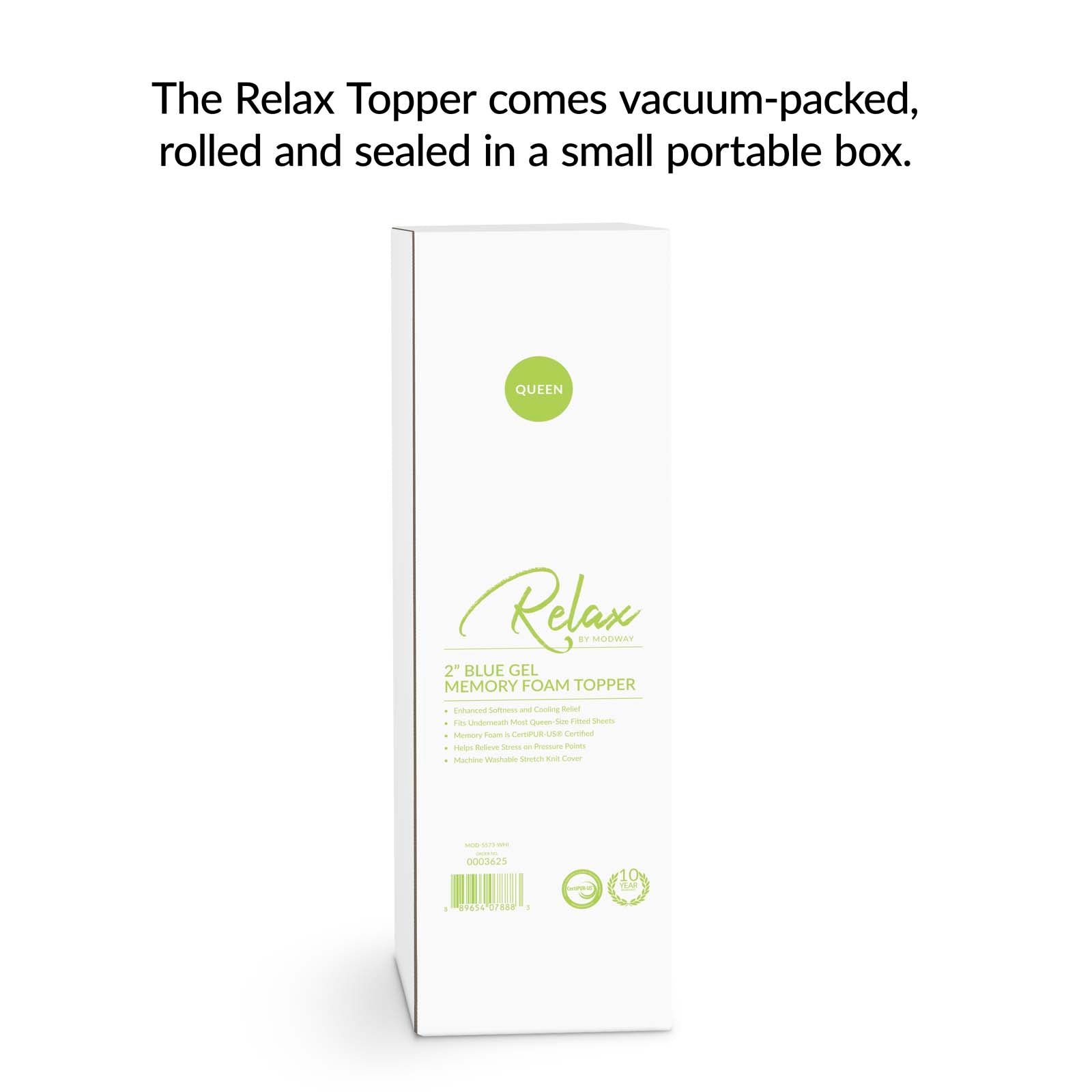 Relax Queen 2" Gel Memory Foam Mattress Topper