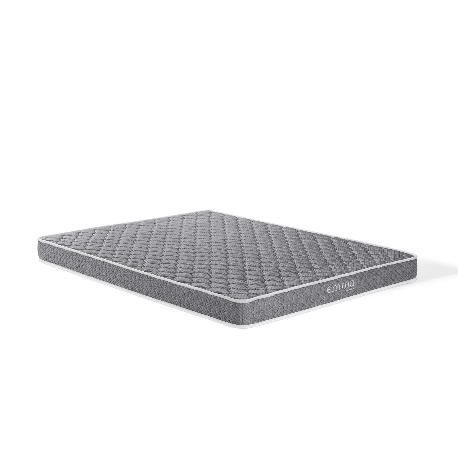 Introducing an affordable boxed bed solution. Emma features a 0.75 inch top layer of memory foam, 5.25 inch dense layer of responsive foam, and a quilted polyester fabric cover with stitched padding for an extra layer of comfort. The perfect extra mattress for adult or guest rooms, Emma easily stores away when not in use and comes compressed, vacuum-packed, rolled, and sealed in a small portable box. Foam meets fire resistant standards and fully decompresses in about 2 hours during the summer, and 72 hours during the winter. Set Includes: One - Emma 6" King Mattress.