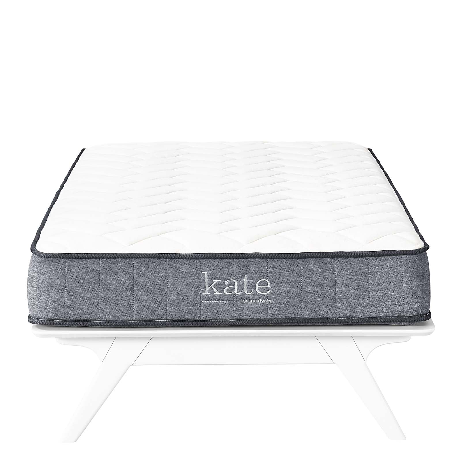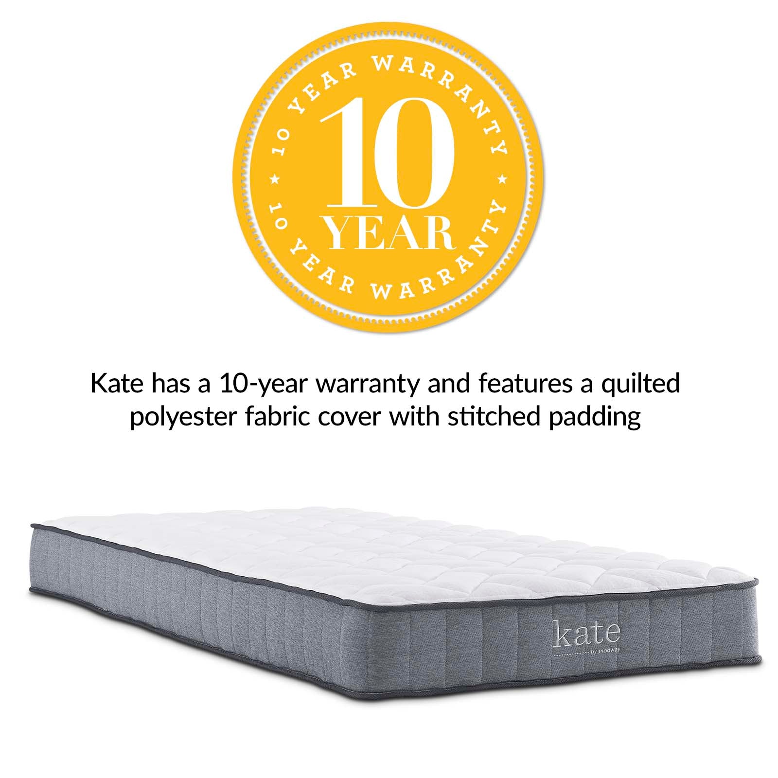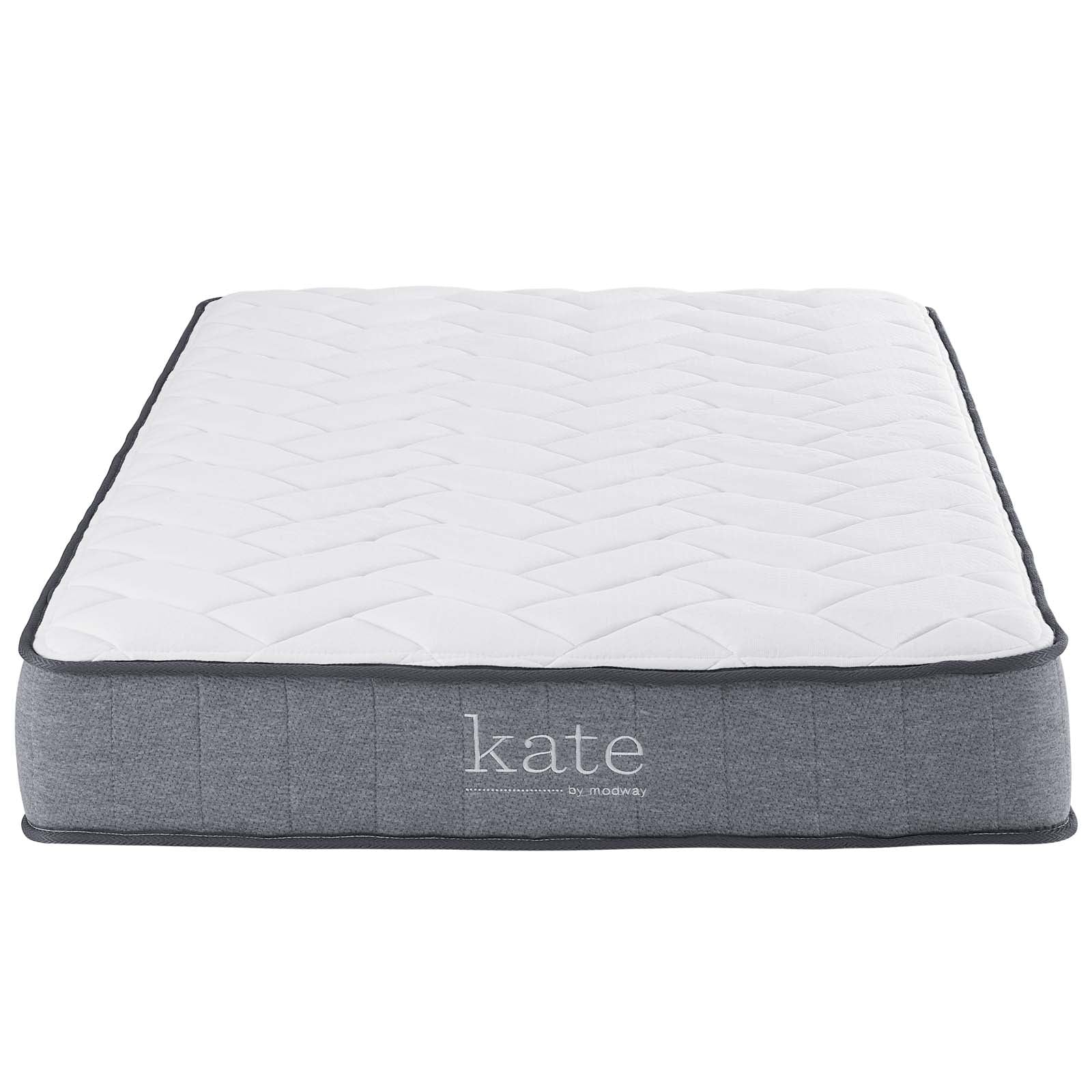 Enjoy sound sleep with the Kate 8� Innerspring Mattress. Limit bounce and absorb motion disturbance between partners with 7.2� tall individually wrapped coils without the sink and sag of foam and air mattresses. This feature is perfect for enabling partners with unique schedules and habits to sleep comfortably while reducing pressure on hips, back and shoulders. Complete with a gray fabric fire-resistant barrier that has been tested to ensure it meets safety standards, Kate comes with a padded quilt fabric top and felt liners for a smooth and even feel. Kate ships conveniently compressed and rolled in a portable box for easy delivery and fun-to-watch setup. Experience the firm yet cushioning support night after night with the Kate Innerspring Mattress. Set Includes: One - Kate 8" Twin Mattress