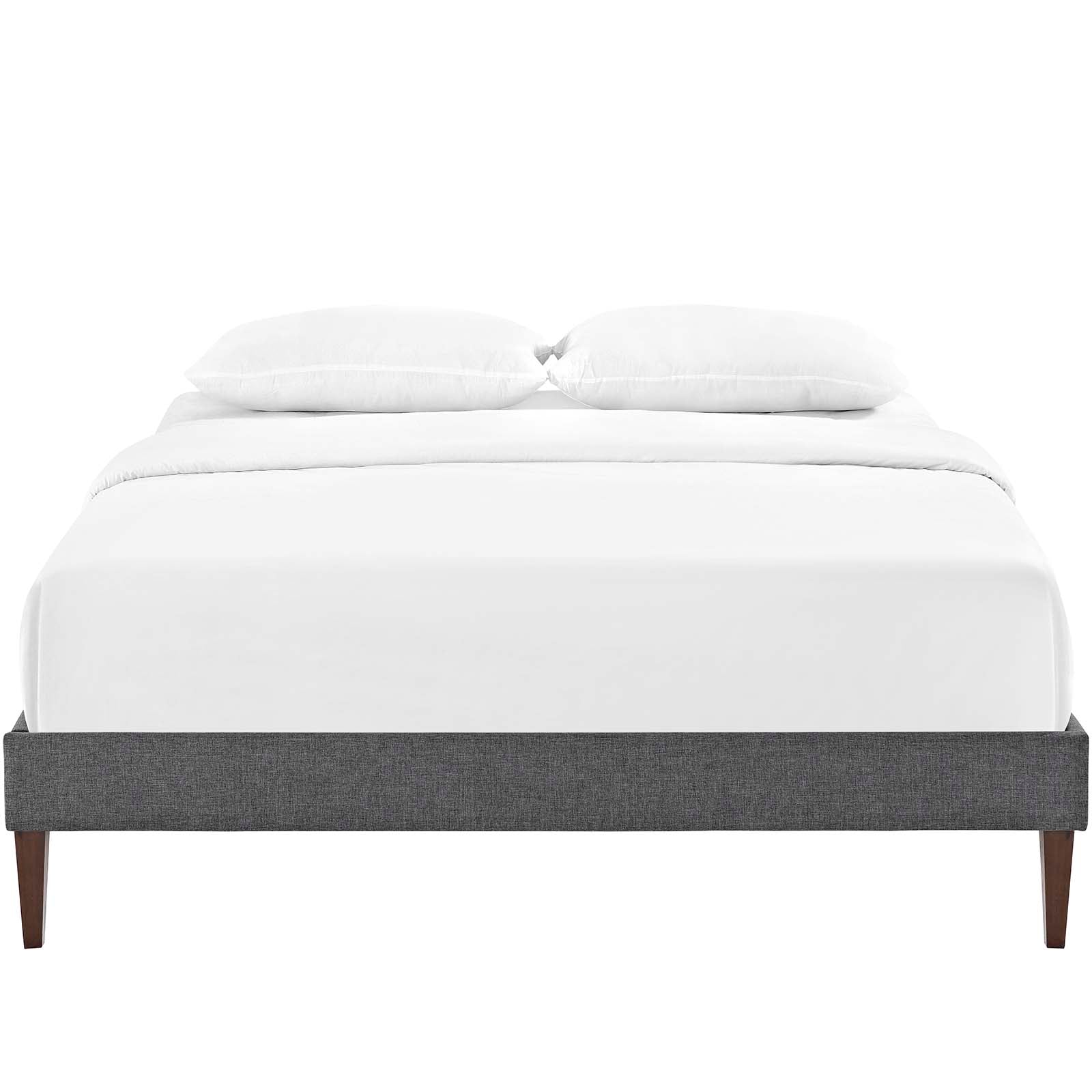 Accelerate your bedroom decor with the Tessie Platform Bed. Made with a solid wood frame upholstered in polyester fabric, Tessie features tapered wood legs, plastic foot glides, ten sturdy wood slats with a centered supporting bar and two support legs for enhanced stability. Due to the wooden slat support system, the use of a box spring is unnecessary. Tessie supports memory foam mattresses such as our Aveline series, and is compatible with one of our headboard styles: Jessamine, Terisa, Laura, Phoebe, Camille, and Josie. Perfect for mid-century modern, minimalist and contemporary bedrooms. Mattress not included. Set Includes: 1 - Tessie Bed Frame