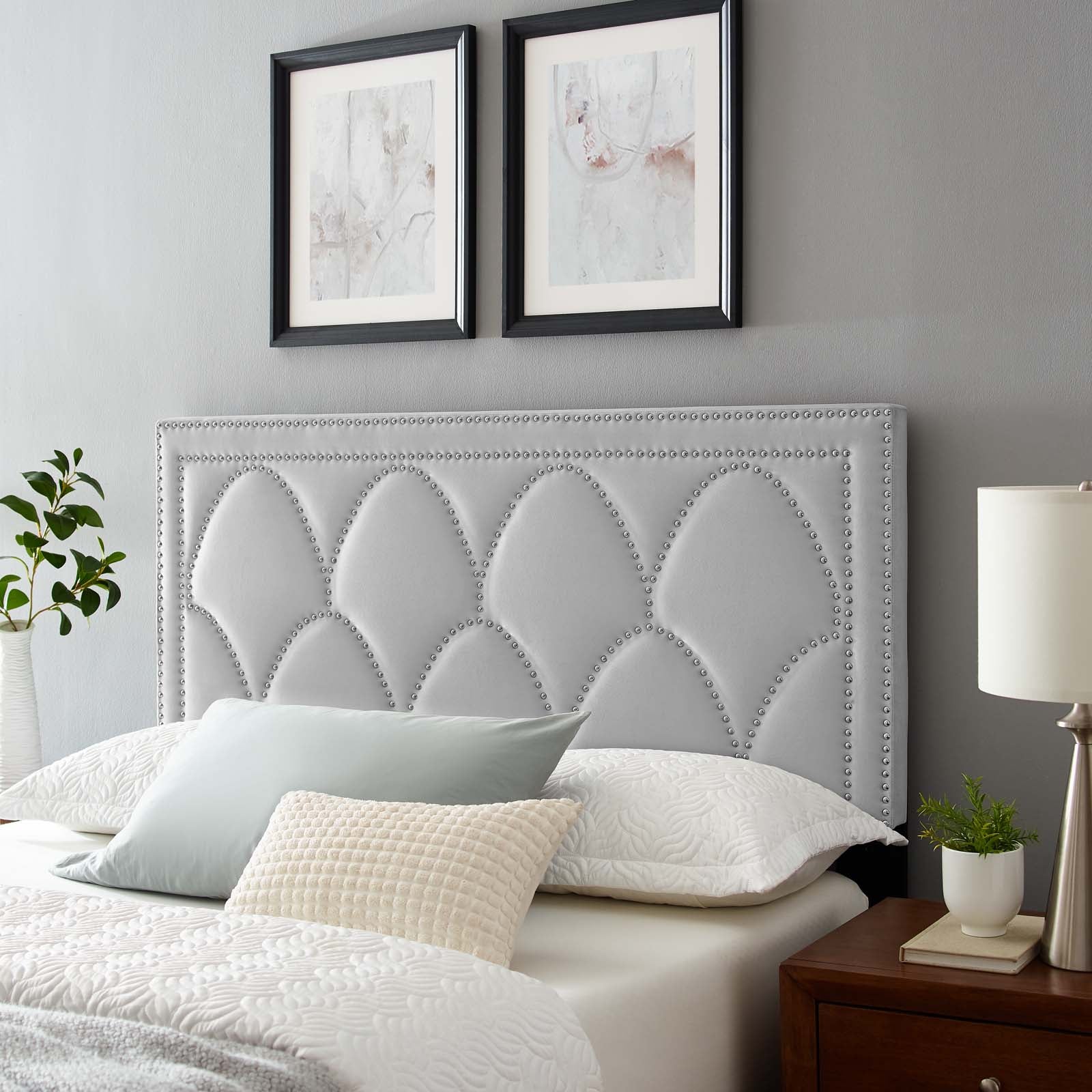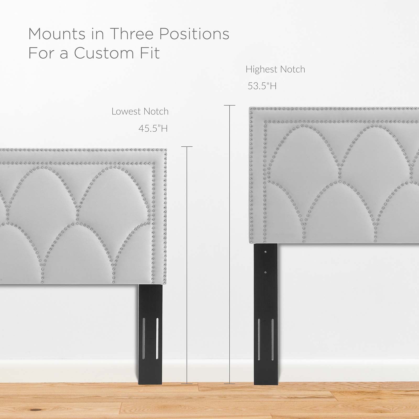 Bring modern elegance and glam deco style to a college dorm, kid's room, or guest bedroom with the Greta Performance Velvet Twin Headboard. Rich in velvety texture and vintage charm, this twin size headboard features classic nailhead detail that forms a beautiful scale pattern and double trim. Upholstered in stain-resistant performance velvet, this foam padded headboard offers supportive comfort while sitting up in bed relaxing, reading, or watching TV. A beautiful backdrop for a variety of bedding styles, this adjustable headboard fits twin bed frames with its three mounting positions. Assembly required. Set Includes: One - Greta Twin Headboard