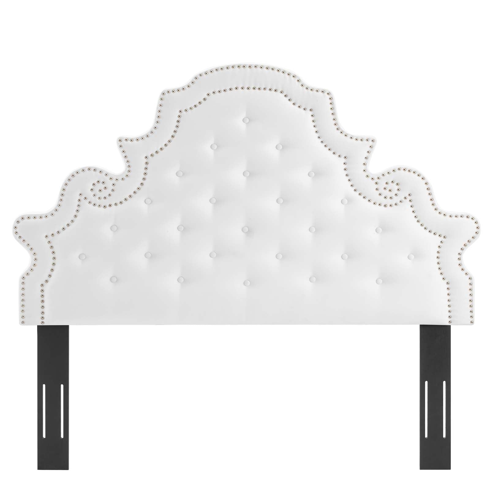Elaborate details exude regal luxury and vintage glamour on the Diana Tufted Performance Velvet Twin Headboard. Featuring classic button tufting and nailhead trim framing the avant garde silhouette, this twin headboard is a stunning addition to a kid's bedroom, guest bedroom, or college dorm room. Upholstered in soft, stain-resistant performance velvet, this padded headboard offers supportive comfort while sitting up in bed reading, relaxing, or watching TV. With various mounting positions, this height-adjustable headboard fits twin bed frames. Assembly required. Set Includes: One - Diana Tufted Performance Velvet Twin Headboard