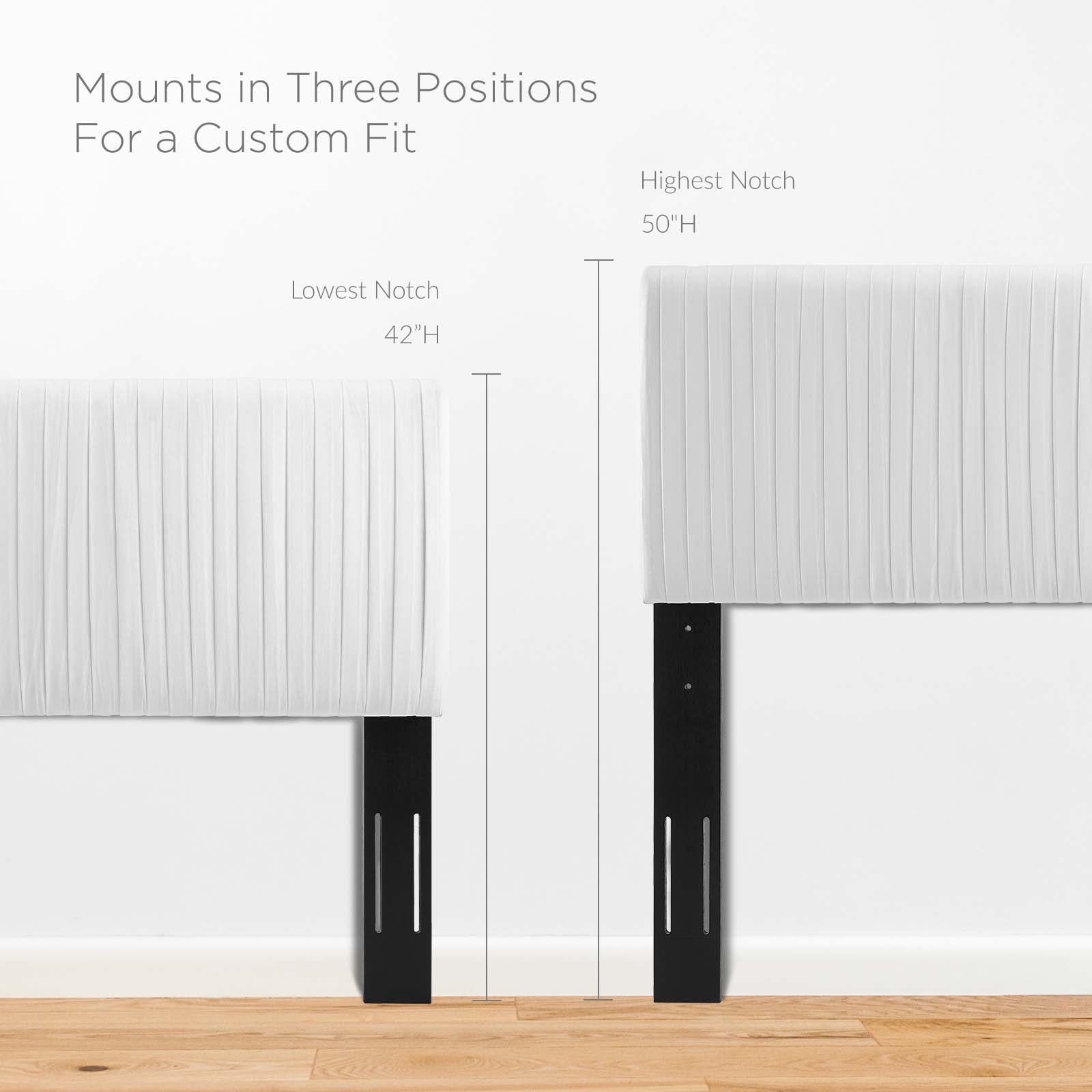 • Dimensions: Overall Product Dimensions: 87"L x 63.5"W x 41.5 - 49.5"H Overall Queen Platform Bed Frame Dimensions: 82"L x 63.5"W x 12"H Headboard Dimensions: 0.5"L x 63.5"W x 12"H Side Rail Dimensions: 81"L x 62.5"W x 12"H Footboard Dimensions: 0.5"L x 63.5"W x 12"H Overall Channel Tufted Full/Queen Headboard Dimensions: 3"L x 62"W x 22"H Floor to Top of Headboard: 41.5 - 49.5"H Floor to Bottom of Headboard: 27.5"H
