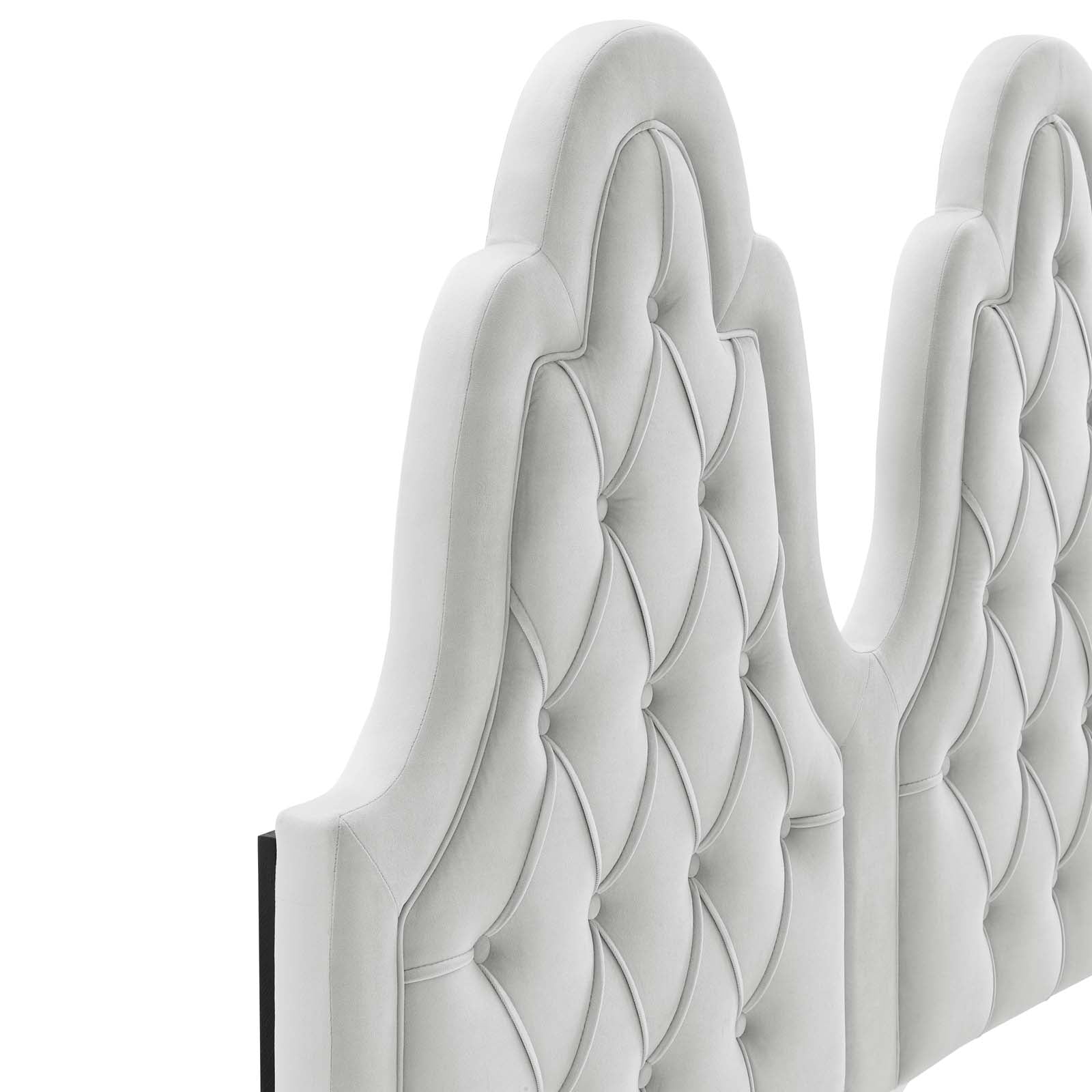 Vintage glamour and regal aesthetics unify on the Alexandria Performance Velvet Twin Platform Bed. A luxurious addition to a guest bedroom or kid's bedroom, the twin headboard on this platform bed features beautiful diamond tufting, French piping detail, and a stunningly unique silhouette. Covered in soft, stain-resistant performance velvet, this upholstered bed is complete with a foam padded headboard granting ultimate comfort and support while sitting up and relaxing in bed. This velvet bed is a sturdy mattress foundation for memory foam, innerspring, latex, and hybrid mattresses. Eliminating the need for a box spring, the MDF frame of this twin size bed is complete with a wood slat support system crafted with poplar for lasting durability and support. This slatted bed frame rests on black wood legs with non-marking foot caps and includes a reinforced center beam with two support legs for enhanced stability. Assembly required. Weight Capacity: 800 lbs. Set Includes: One - Augustine Tufted Twin Headboard One - Reign Twin Platform Bed Frame