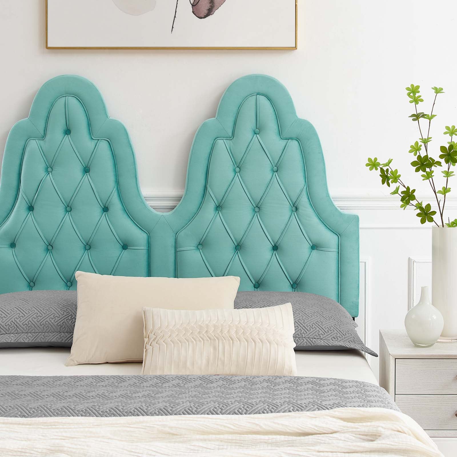 Alexandria Tufted King Platform Bed in Mint