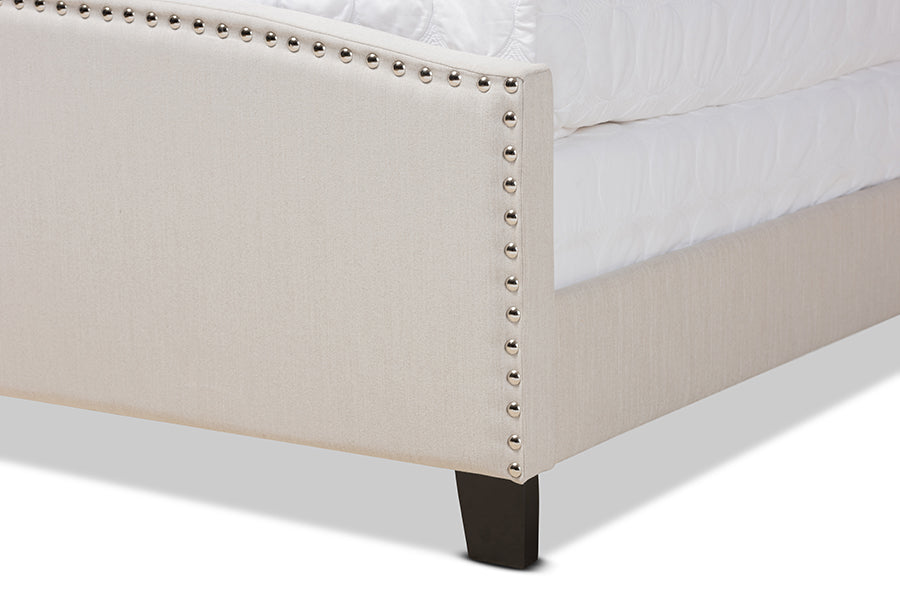 Baxton Studio Morgan Modern Transitional Beige Fabric Upholstered Queen Size Panel Bed