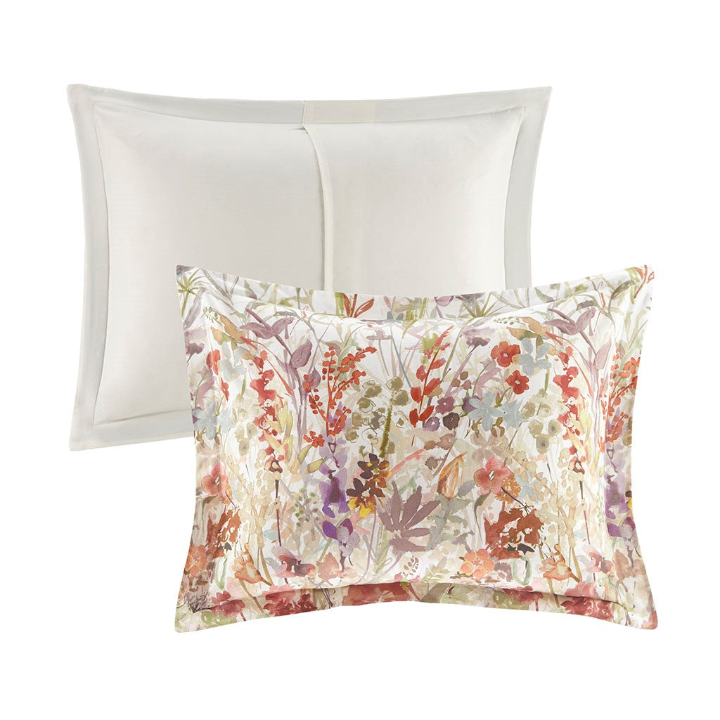 The Madison Park Mariana 7 Piece Cotton Printed Comforter Set brings a touch of beauty to your bedroom decor. This cotton comforter features a watercolor floral print that runs from the middle of the bed to the foot, for a beautiful transitional look. Two coordinating shams pair perfectly with the comforter, while three decorative pillows with embroidery and tufted details provide rich textural accents to the bed. A solid bed skirt adds the finishing touch to complete the cotton comforter set. Machine washable for easy care, this bedding set is also OEKO-TEX certified, meaning it does not contain any harmful substances or chemicals to ensure quality comfort and wellness.