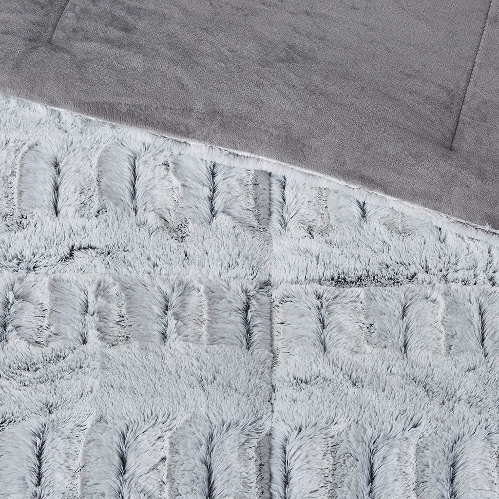 Sleep in the pure softness and comfort of the Madison Park Gia Back Print Long Fur Comforter Mini Set. The ultra-soft grey comforter flaunts a stylish brushed faux fur on the face that flips to a soft faux mink reverse, for a luxurious look and feel. Matching shams (1 sham for Twin sizes) mirror the design of the comforter and feature a 2-inch flange to complete the comforter set. Hypoallergenic filling in the faux fur comforter provides exceptional warmth and comfort, while the end-to-end box stitching keeps the filling in place. Incredibly soft, this reversible long fur comforter mini set brings the perfect amount of comfort and glamorous style to your bedroom decor. This comforter is OEKO-TEX certified, meaning it does not contain any harmful substances or chemicals to ensure quality comfort and wellness.