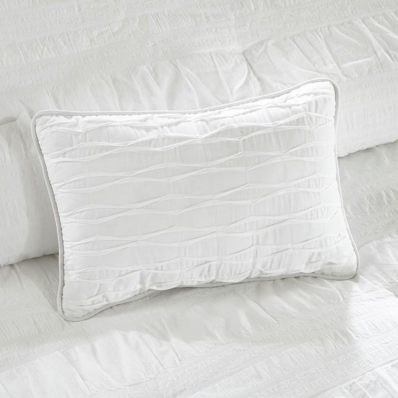 The Madison Park Nicolette 4 Piece Duvet Cover Set turns your bedroom into a cozy getaway. This seersucker duvet cover showcases a simple, yet intricate striped pattern in an elegant white hue. The textured fabric is light and soft to the touch, adding freshness and dimension to the bed. Matching shams echo the style of the duvet cover, while a decorative pillow helps complete the entire ensemble. Made from 100% cotton, this duvet cover set is machine washable for easy care.