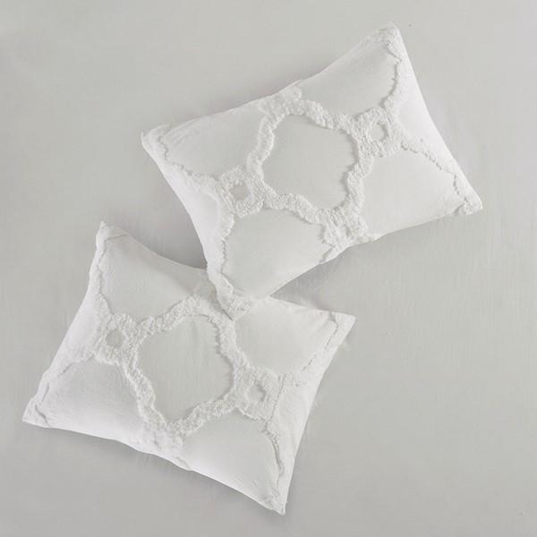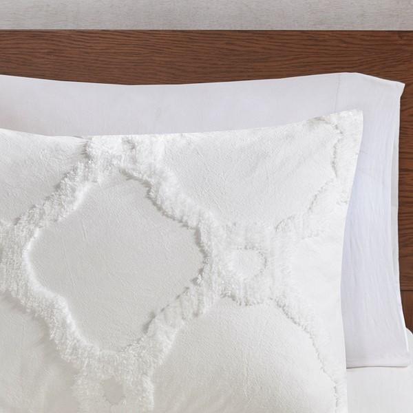 Refresh your bedroom décor with the charming style of the Madison Park Pacey 3-Piece Cotton Chenille Duvet Cover Set. Made with 100% cotton in duvet cover, it displays a luxurious chenille design in an all-over geometric pattern that adds a soft texture to the bedding set. The matching shams perfectly coordinate with the duvet cover to create a classic shabby chic look. Machine washable for easy care, this cotton chenille duvet cover set provides a delightful and captivating update to your bedroom. Button closures and the internal ties on 4 corners to secure the insert from shifting.