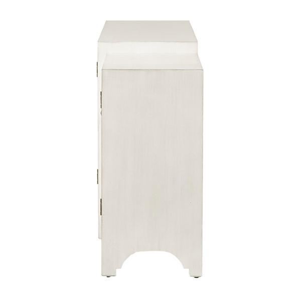 The Madison Park Verona Dining Buffet Server Quaterfoil Design Kitchen Storage Cabinet with Mirrored Doors offers an elegant and luxurious storage solution to your dining space. This kitchen buffet features four mirrored front doors with elegant wood detailing that creates a beautiful transitional look. Each door opens up to an adjustable shelf to easily store your flatware and glasses, while magnetic catches keep the doors securely closed. On the manufactured wood frame and solid wood legs, a cream wood finish adds a soft and subtle beauty to the design. Incorporate this buffet into your dining decor to give your home an eye-catching and lavish update.