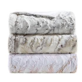 100% Polyester Marble Printed Knitted Long Fur Throw