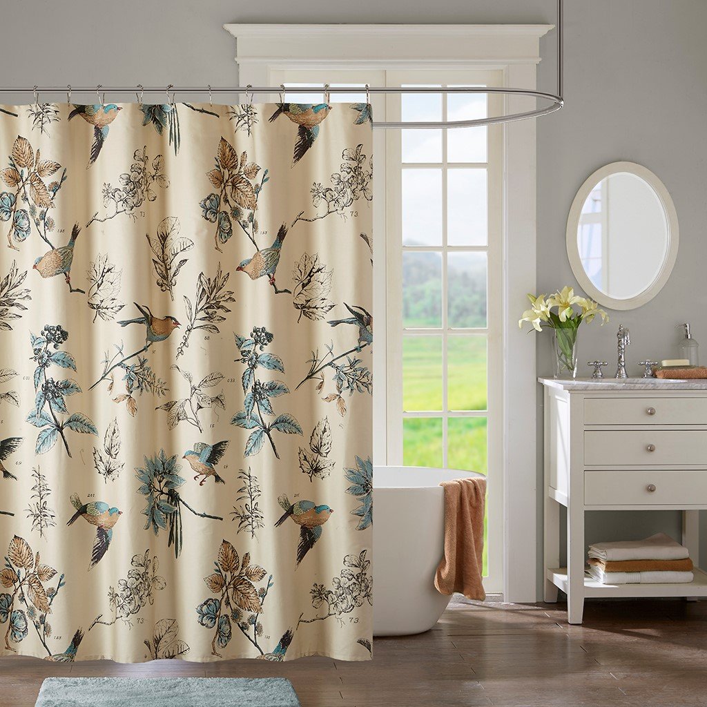 Subtle and charming, the Madison Park Quincy Shower Curtain is the perfect update to your space. The soft and neutral color palette features a floral pattern with lifelike birds printed on a khaki ground. Made from cotton twill, this shower curtain adds a classic touch to your bathroom.