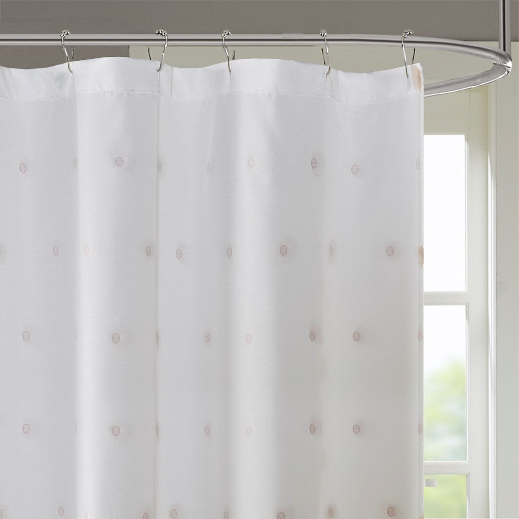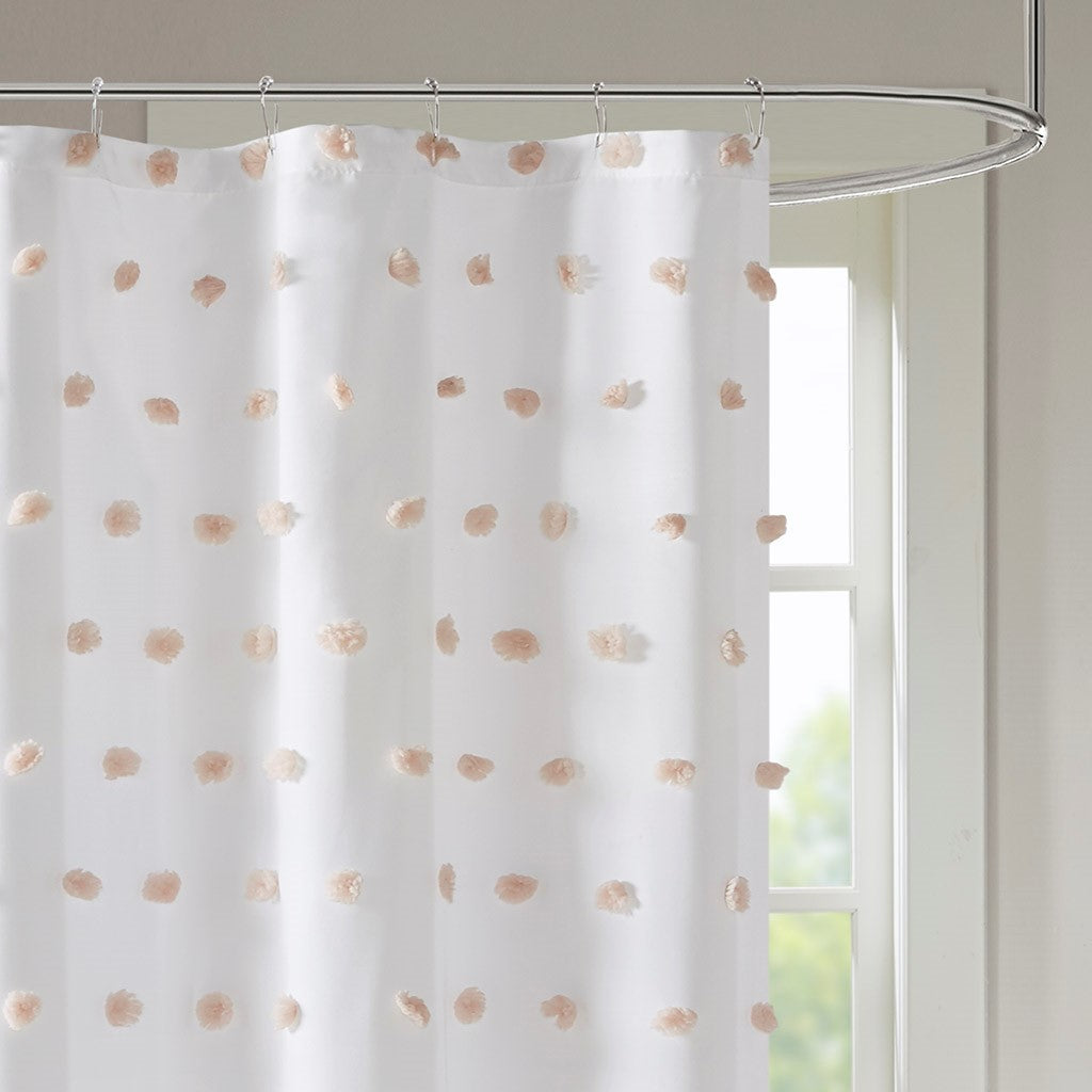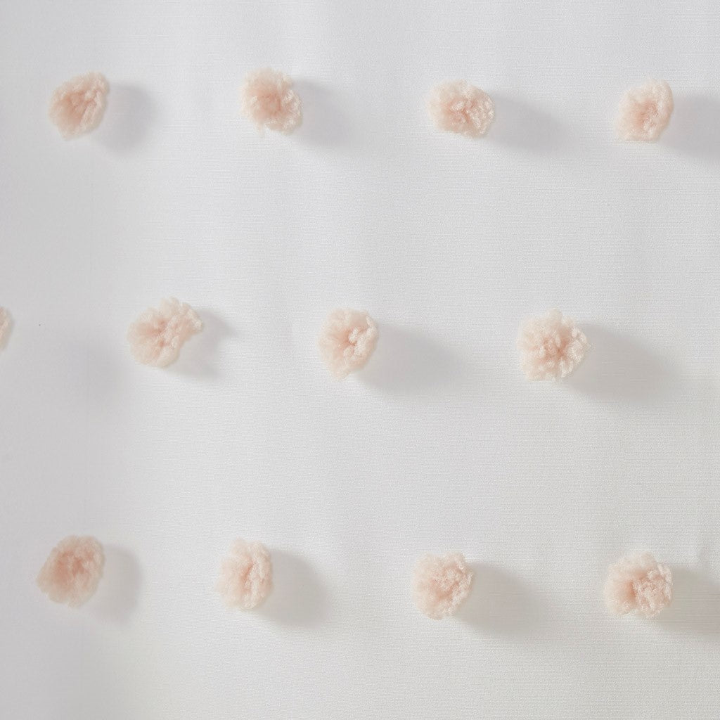 Add a fun update to your space with the Sophie shower curtain. The solid white background features rows of soft blush fabric pom poms, adding beautiful texture and a stylish update to any bathroom.