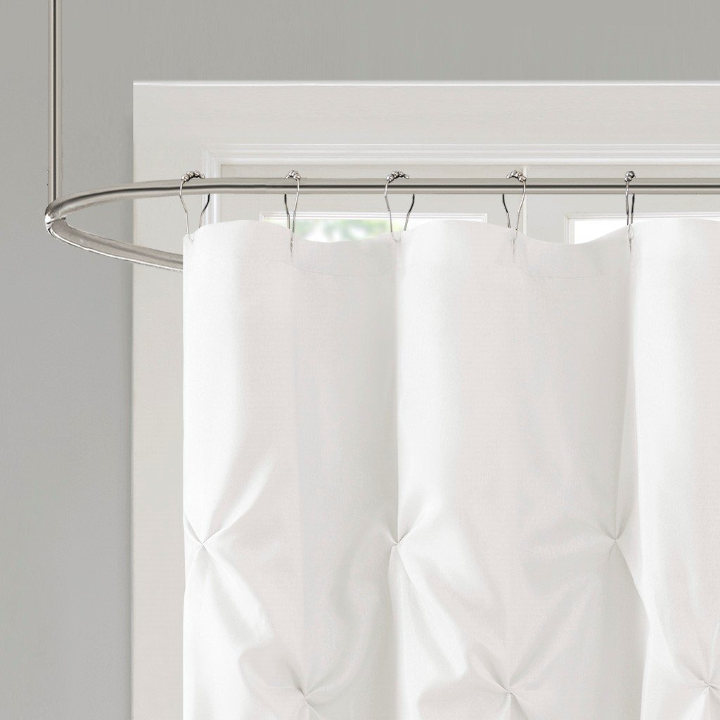 Update your bathroom instantly with the Laurel Shower Curtain. Its soft bright white color paired with large tufting creates a contemporary look while adding value to your space. Made from 100% polyester polyoni, this shower curtain is machine washable for easy care.
